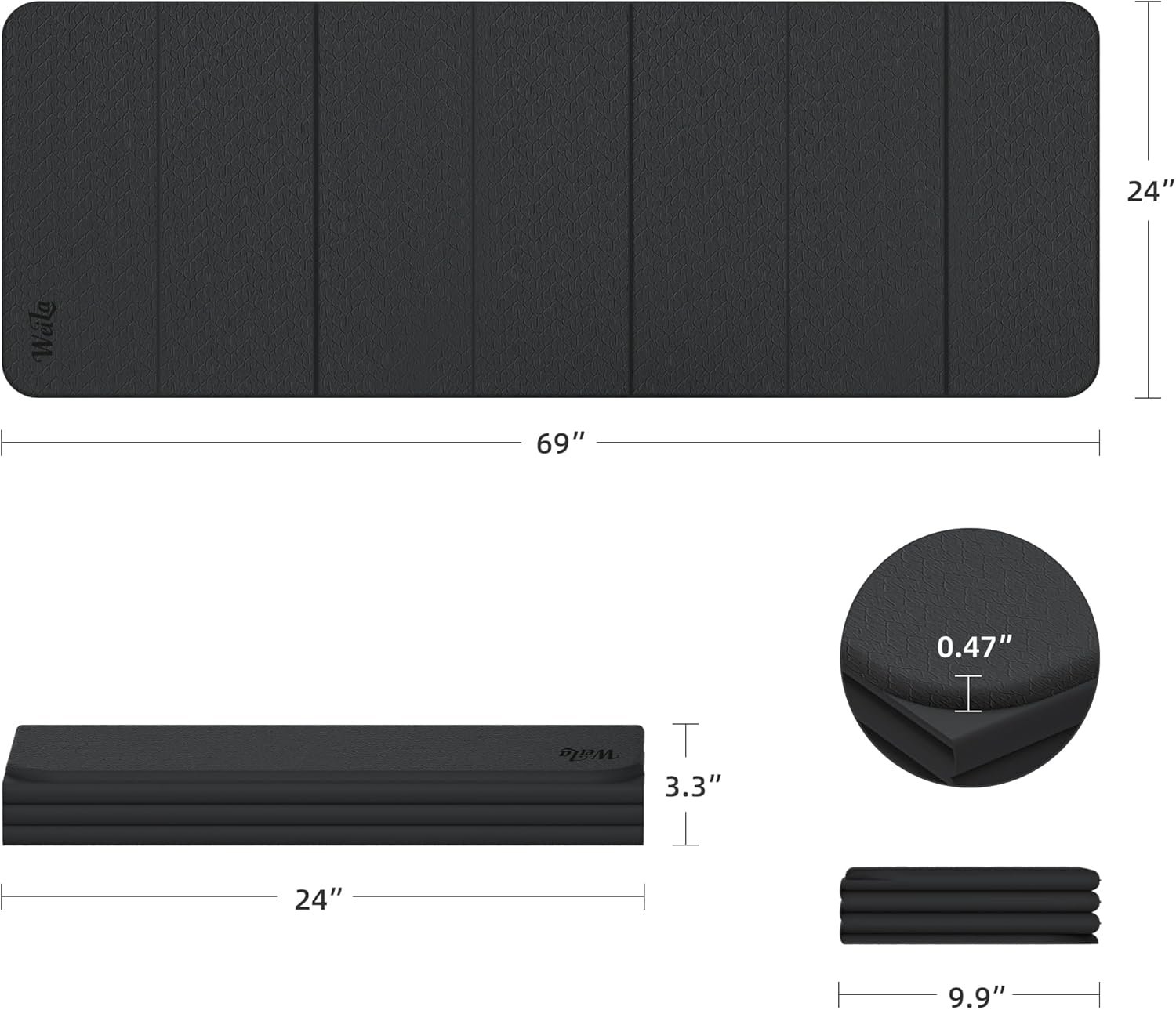 Thick and Comfortable Design: The WEILA 7-Fold light weight exercise yoga mat has an impressive 1/2 inch (12mm) thickness. This provides exceptional cushioning, when you’re performing exercises at the gym, doing home fitness routines, or practicing pilates. It protects your joints from the hard floor, allowing you to focus on your workout without discomfort.