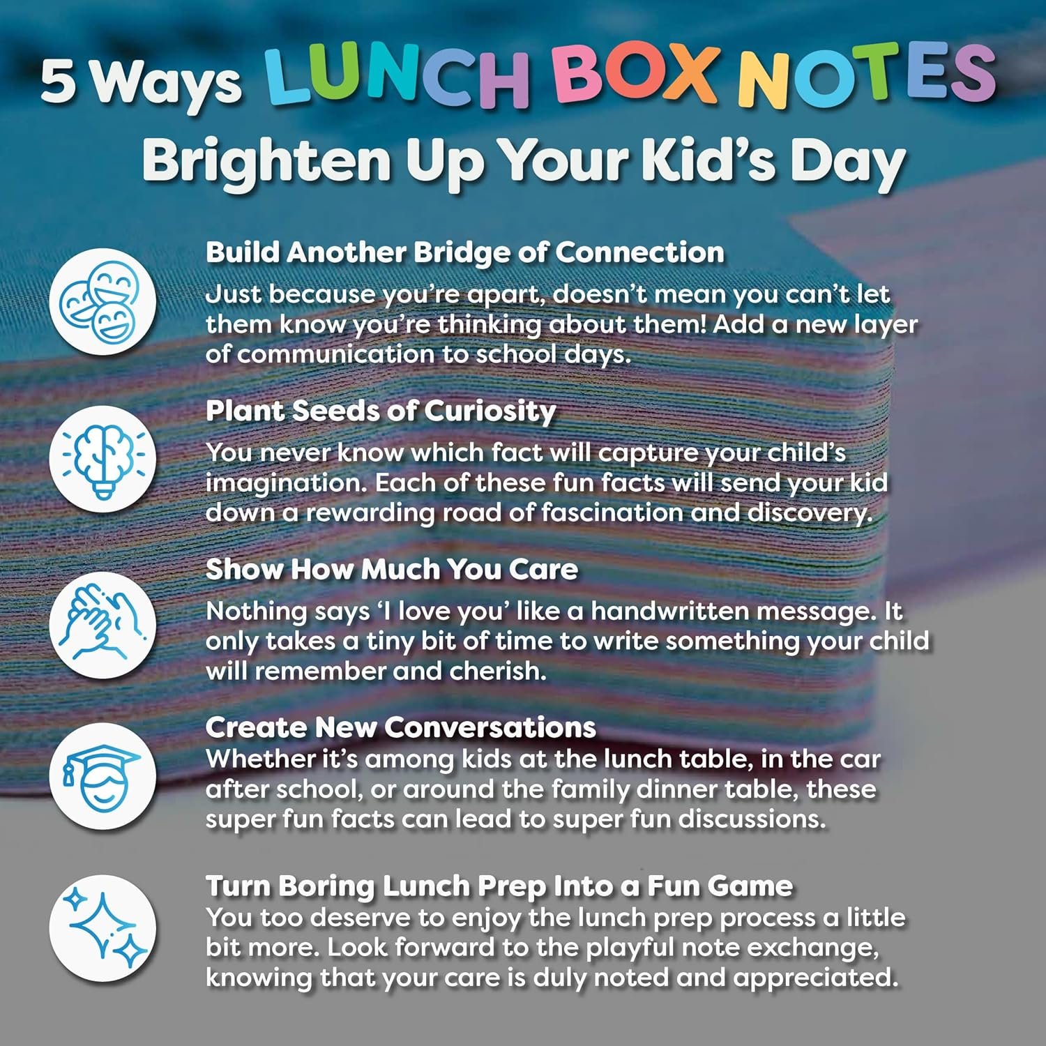 Fun & Educational Design for Kids of All Ages – Each lunch box note includes unique daily fun facts that kids can share with friends, making school lunch or lunchtime more social, engaging, and educational for boys and girls alike.