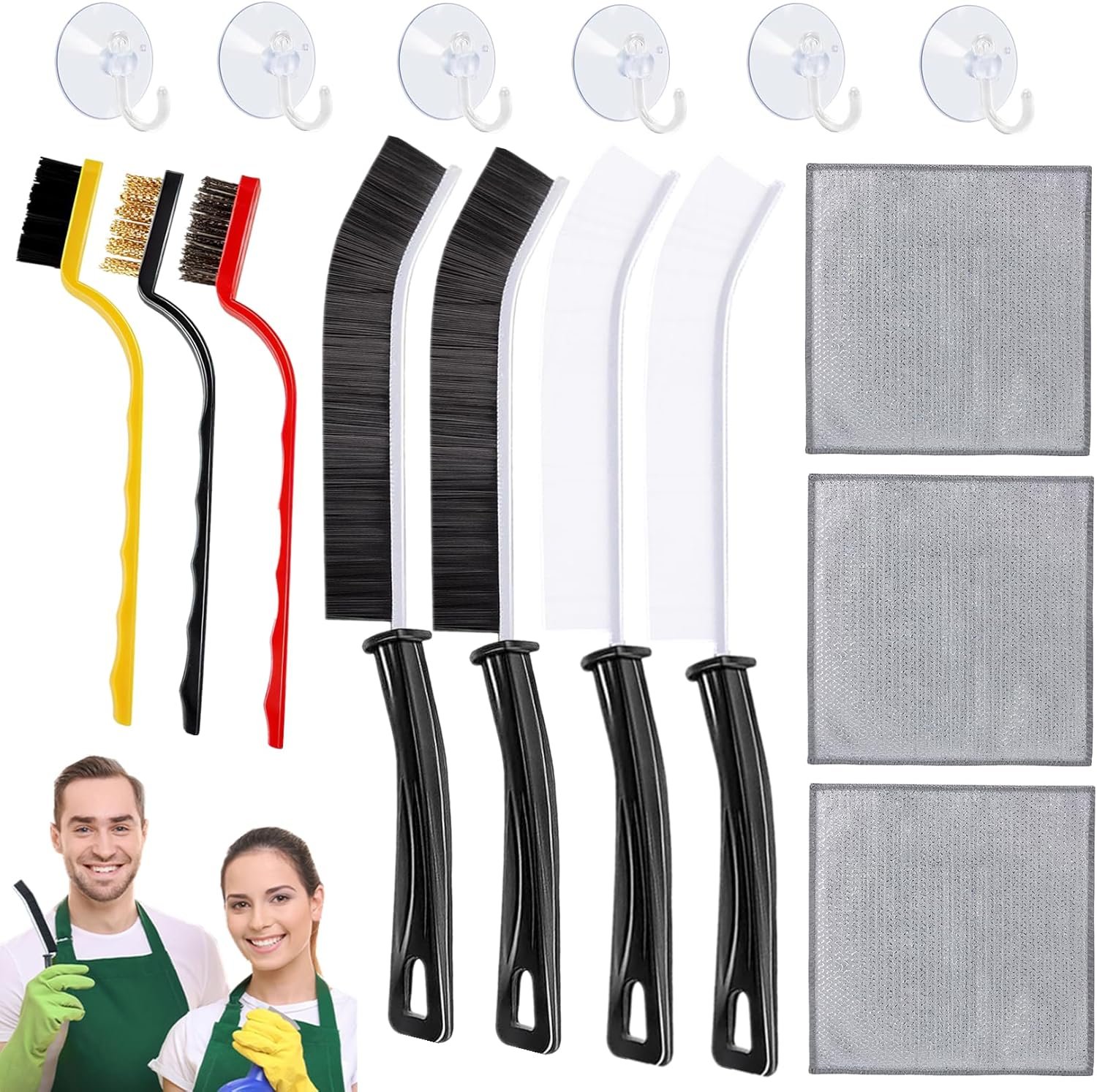 16Pcs Crevice Cleaning Brush Set, Hard Bristle Gap Cleaning Brush for Bathroom Window Tracks, Deep Cleaning Tools Kit with Wire Detail Brushes & Non-Scratch Wire Dishcloths for Kitchen