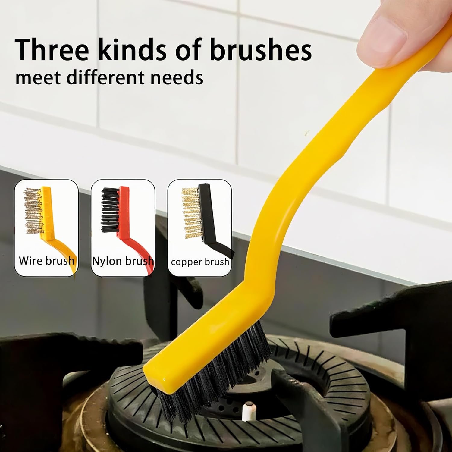 【SPECIALIZED BRUSHES FOR EVERY SURFACE】: Tackle specific messes with precision: Use the Stainless Steel brush for heavy rust and paint removal; the Brass brush for cleaning metal parts and stove burners without damaging finish; and the Nylon brush for delicate grout lines, faucets, and electronics. Professional-grade detailing made easy.