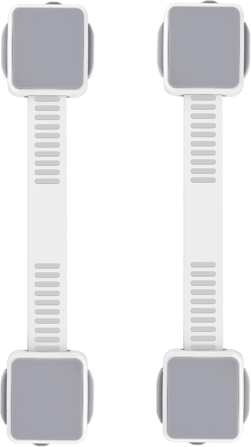 2 Pack Child Safety Cabinet Locks for Baby Proofing, Length Adjustable Latch Straps Dual Button Design for Drawers Fridge Refrigerator Doors Toilet Seat Oven