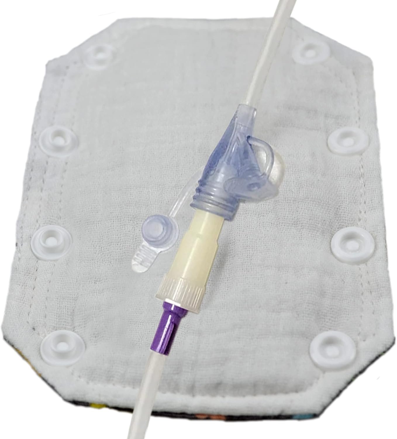 RIGHT PLACE:Each connection has a close spaced snap to completely enclose the feeding tube connection and hold the cover in place.
