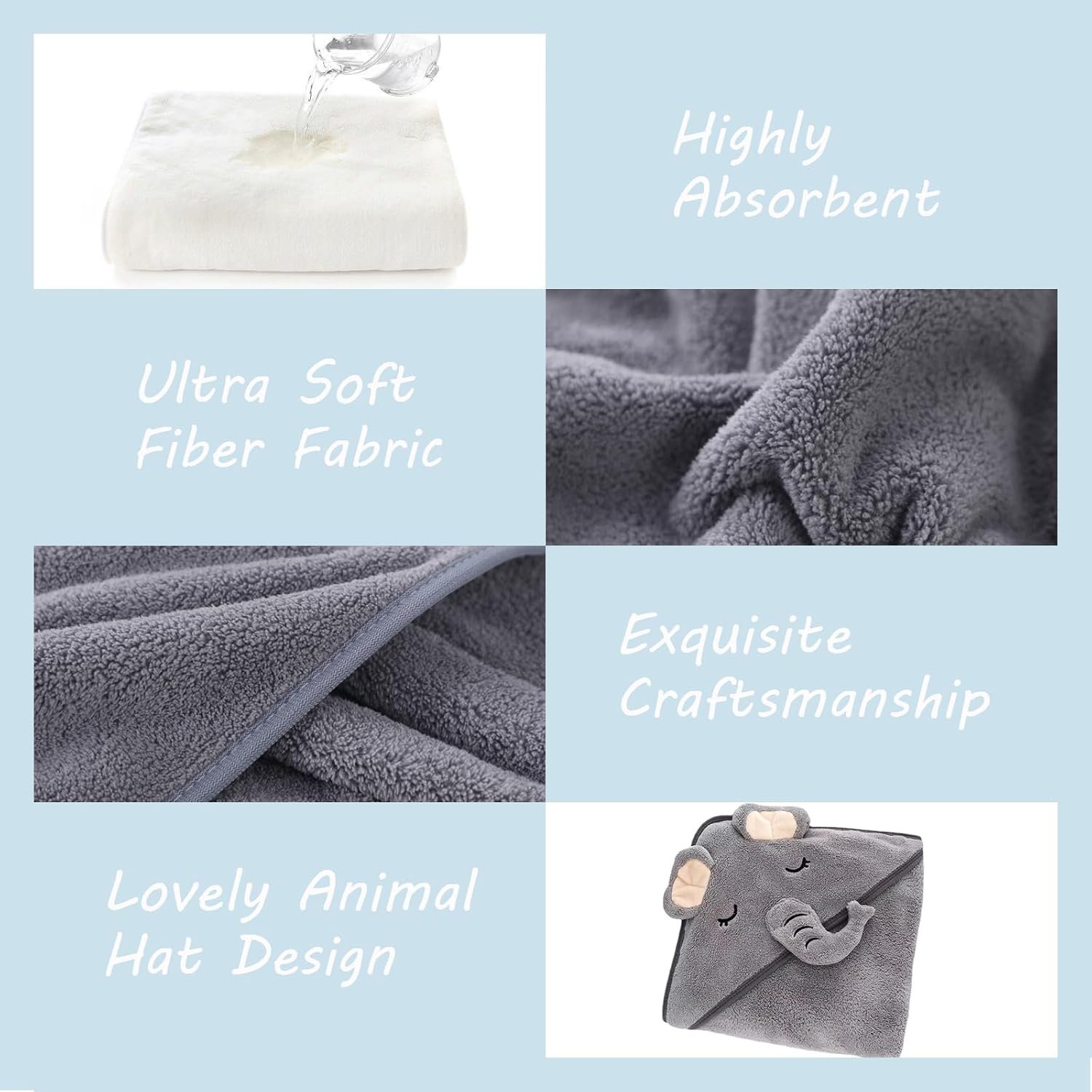 CUTE ANIMAL HOODED DESIGN: The adorably animal face hood, can dry your baby’s hair quickly and safely protect your baby from catching a cold. Your angle is sure to love it!