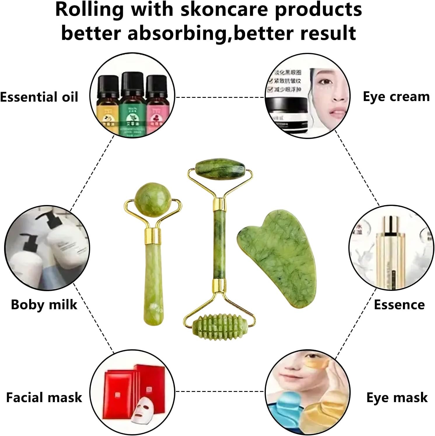 Complete Facial Care Set Included: Features a jade roller and gua sha tools designed to support soothing massage sessions and promote relaxation during your skincare routine.