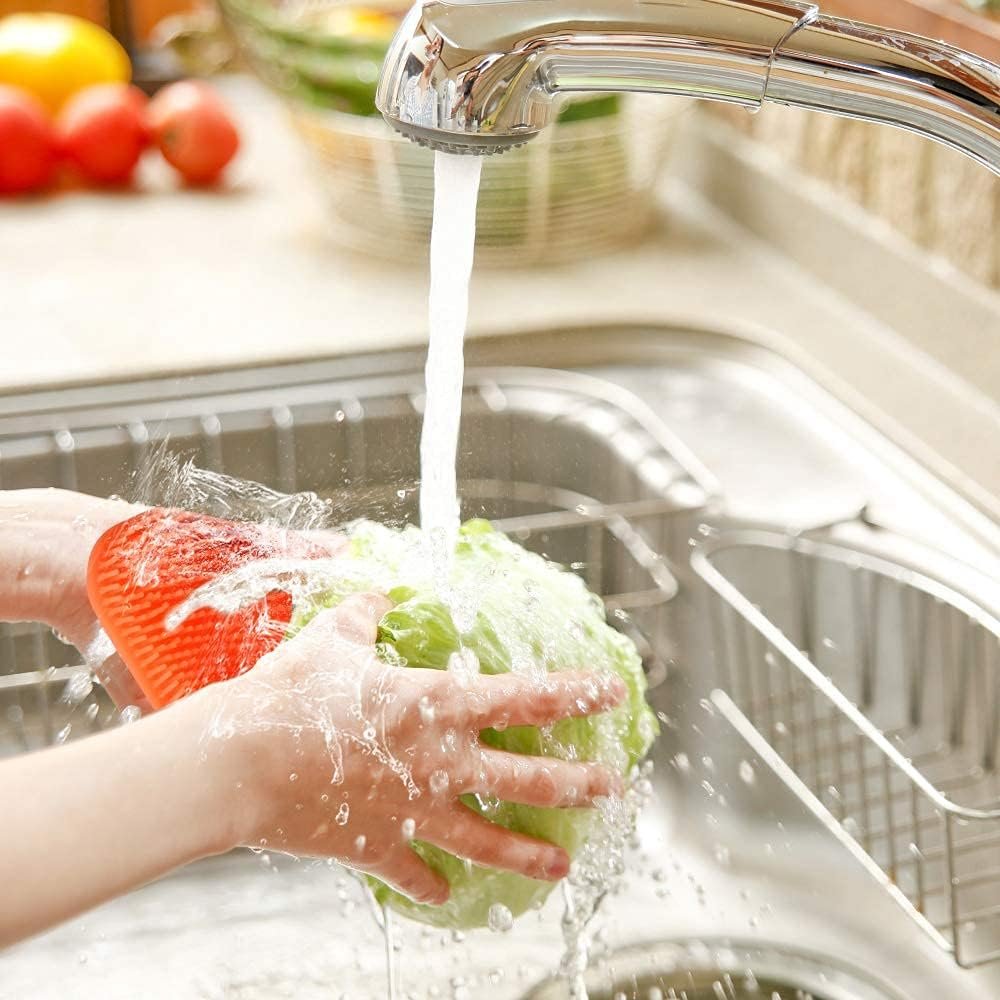The sponge brush of the kitchen sponge is made of high-quality food-grade silica gel, which is easy to clean, natural and fast drying, easy to operate