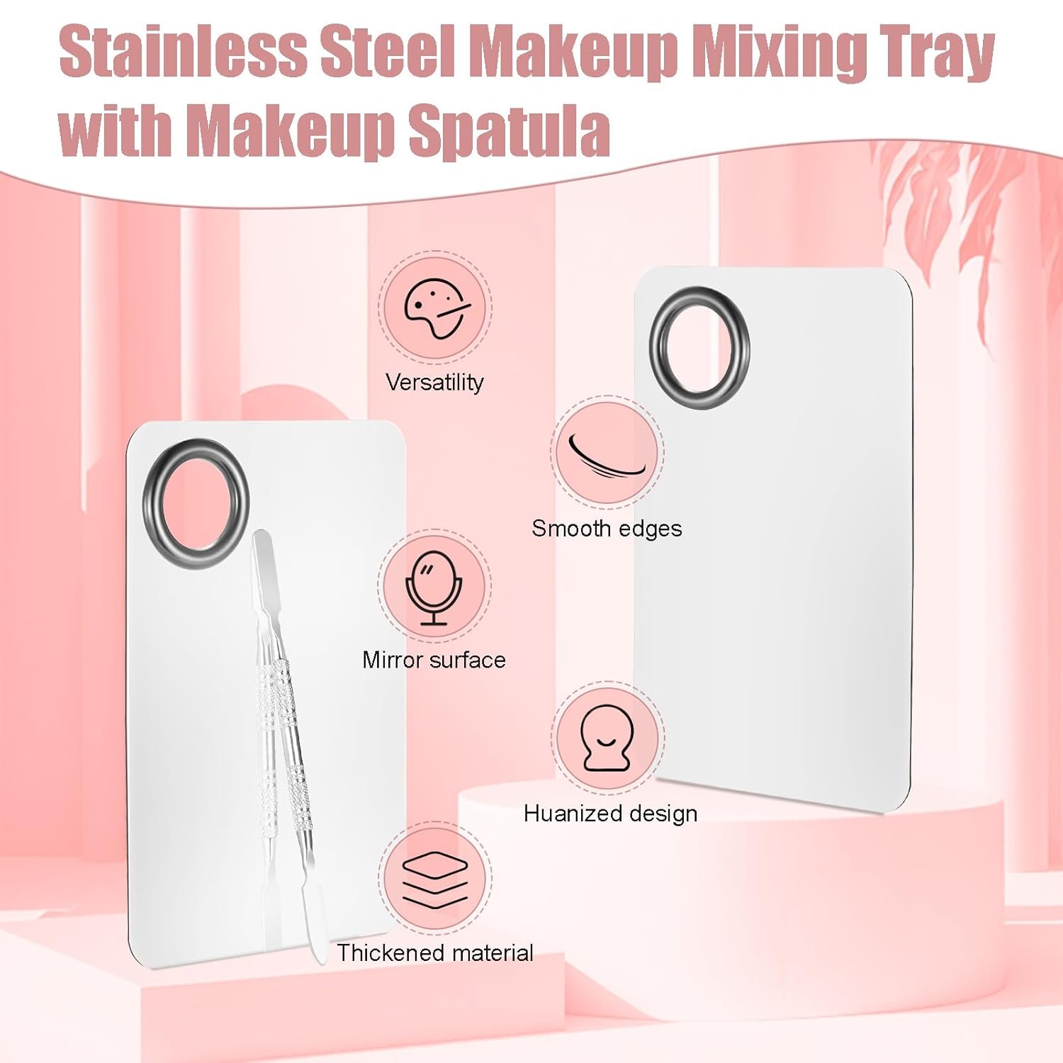 1.【Makeup Mixing Tray with Makeup Spatula Set】Includes 1 foundation mixing palette, 1 mixing stick, 1 foundation spatula korean, and 1 Y-shaped foundation shovel, all made of stainless steel. They are compact and convenient for travel, suitable for makeup enthusiasts, professional makeup artists, or beginners.