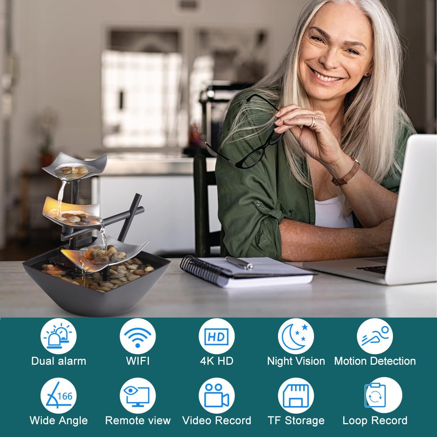 4K WiFi Camera Clock 5G Indoor Security Nanny Cam for Baby Monitor, Dog Camera with Motion Detection, Night Vision