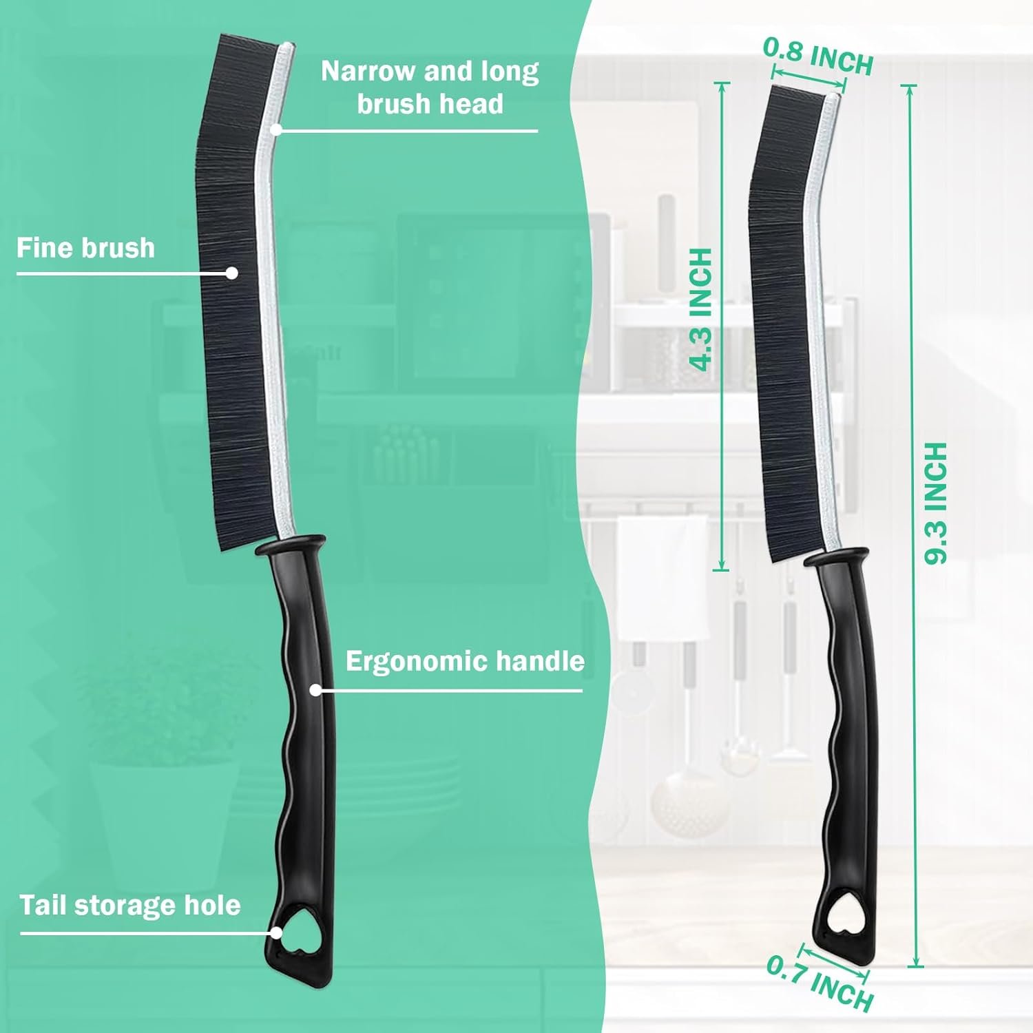 With a sturdy structure and ergonomic design, allowing for easy operation and reducing hand fatigue.the gap cleaning brush is comfortable to hold and easy to use, designed with a small hole for easily hanging up to save space and dry it.