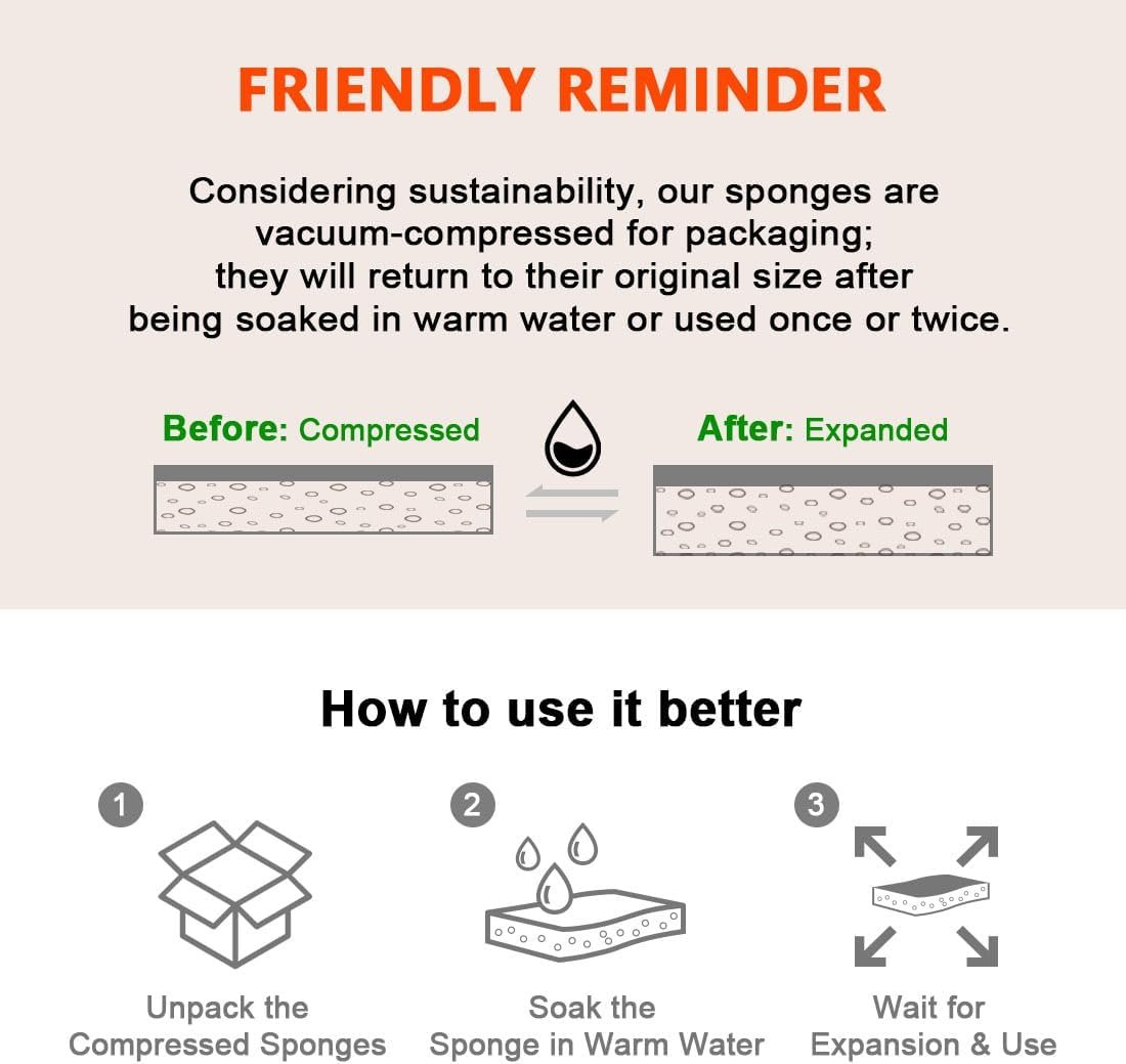 Dishwasher-Safe Sanitization: Made with sustainable materials, AIDEA kitchen sponges rinse clean and dry quickly; prevent unpleasant odors; for extended use, sanitize in your dishwasher