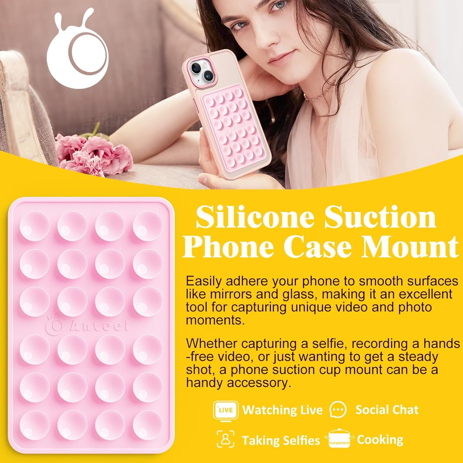 Anteel Silicone Suction Phone Case Adhesive Mount, Durable, Hands-Free Sticky Phone Holder, Upgraded Thickened and Enhanced Suction Power Sticky Phone Grip, 2.56″x3.94″ (Light Pink)