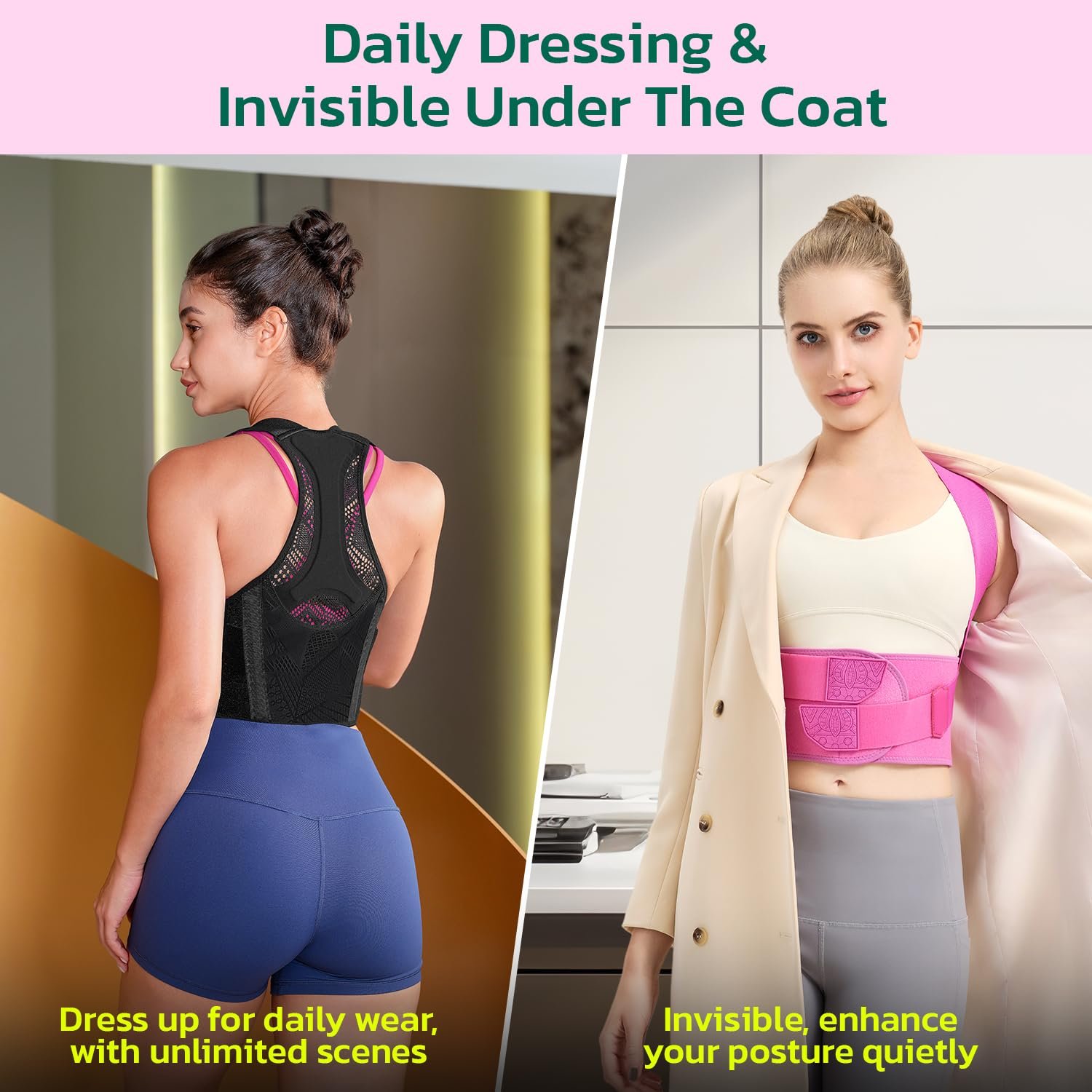Lightweight and Breathable: Made with breathable materials and ventilation holes, this corrector keeps your back cool and sweat-free. It eliminates discomfort from traditional supports, ensuring you stay refreshed during extended wear. Seamlessly fitting under or over clothing, it provides unmatched comfort for any season or activity.