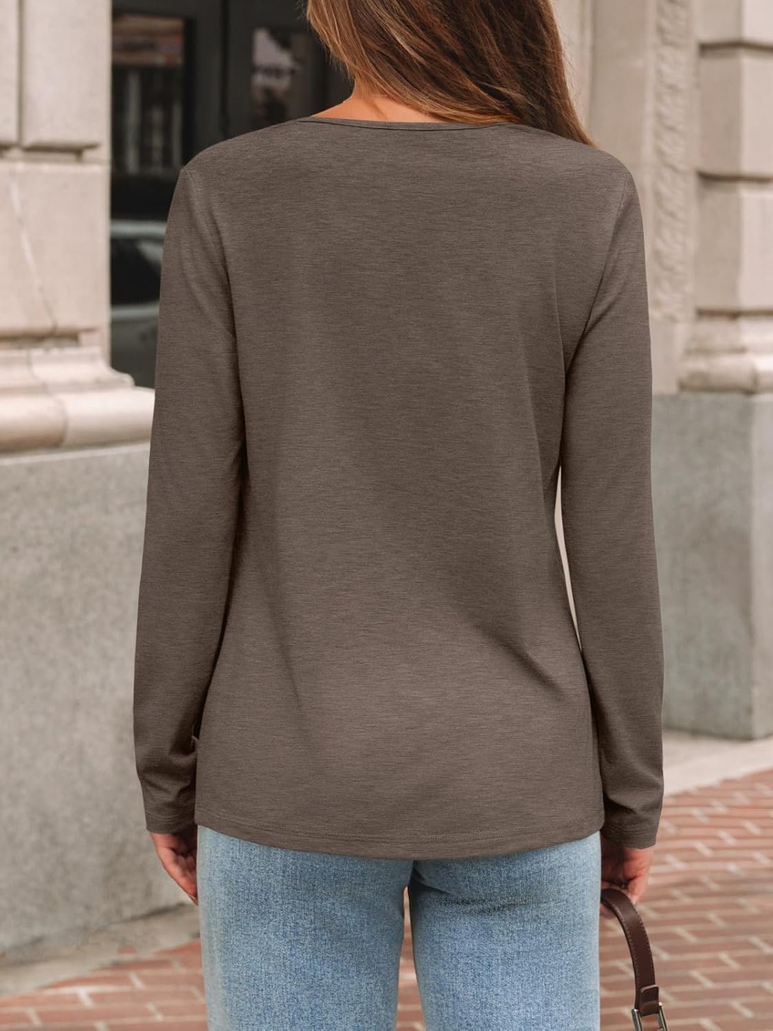 AUTOMET Long Sleeve Shirts for Women Tops V Neck Casual Top Comfortable Shirt Soft Basic Tees Women Blouses