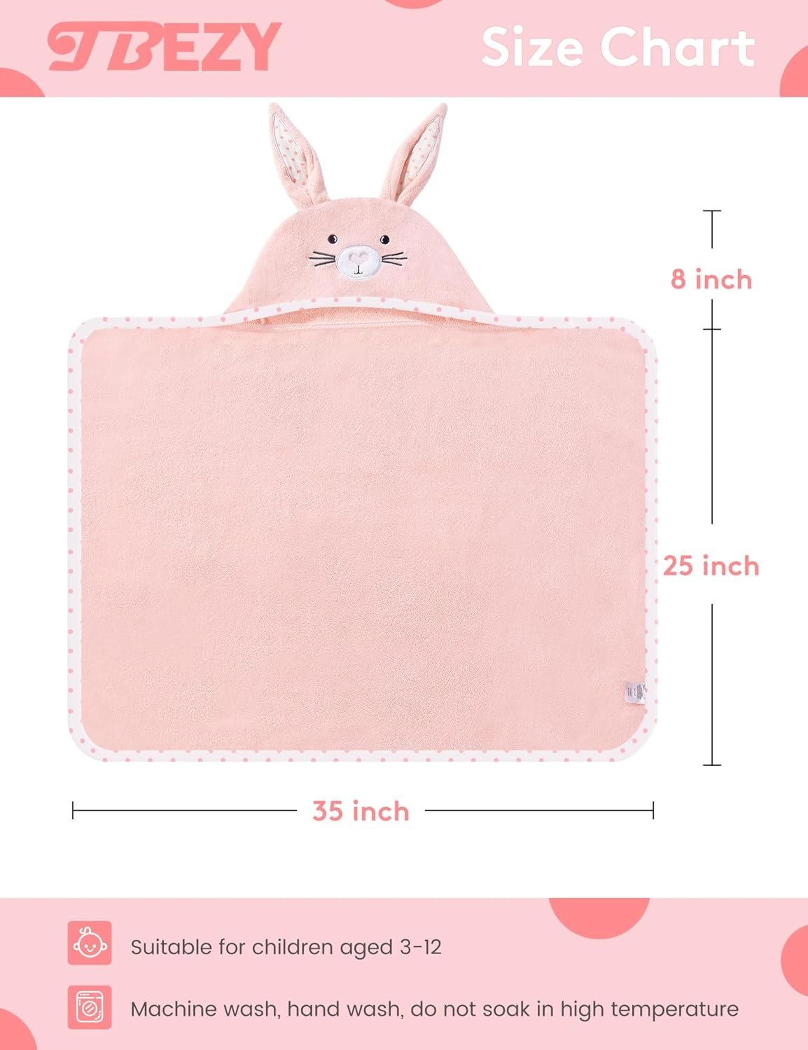 Baby Hooded Towel with Unique Animal Design Ultra Soft Thick Cotton Bath Towel for Newborn (Bunny)
