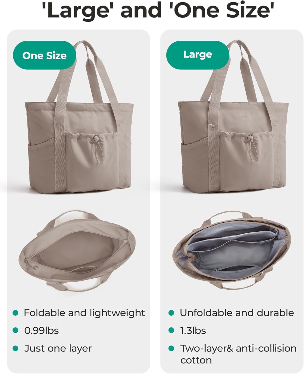 BAGSMART Foldable Tote Bag with Drawstring Bag, Large Tote Bag Shoulder Bag Top Handle Handbag for Travel, Work, Beach, Gym