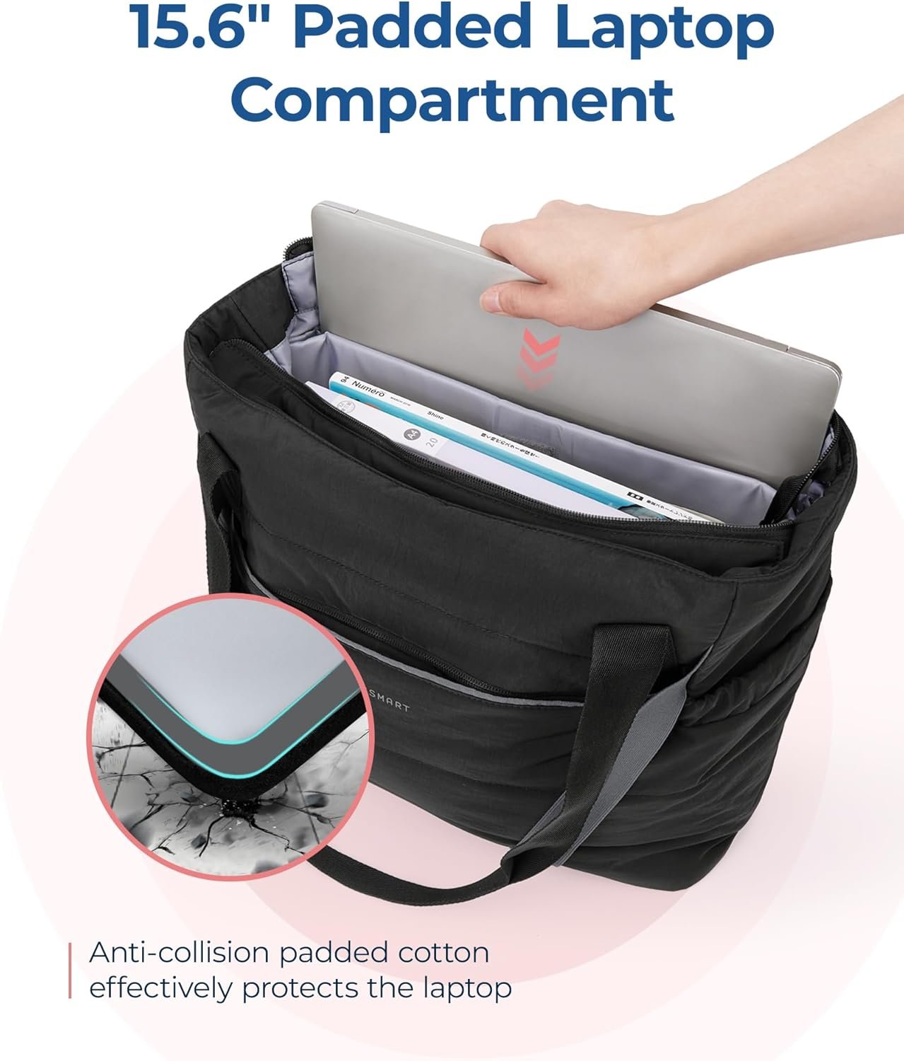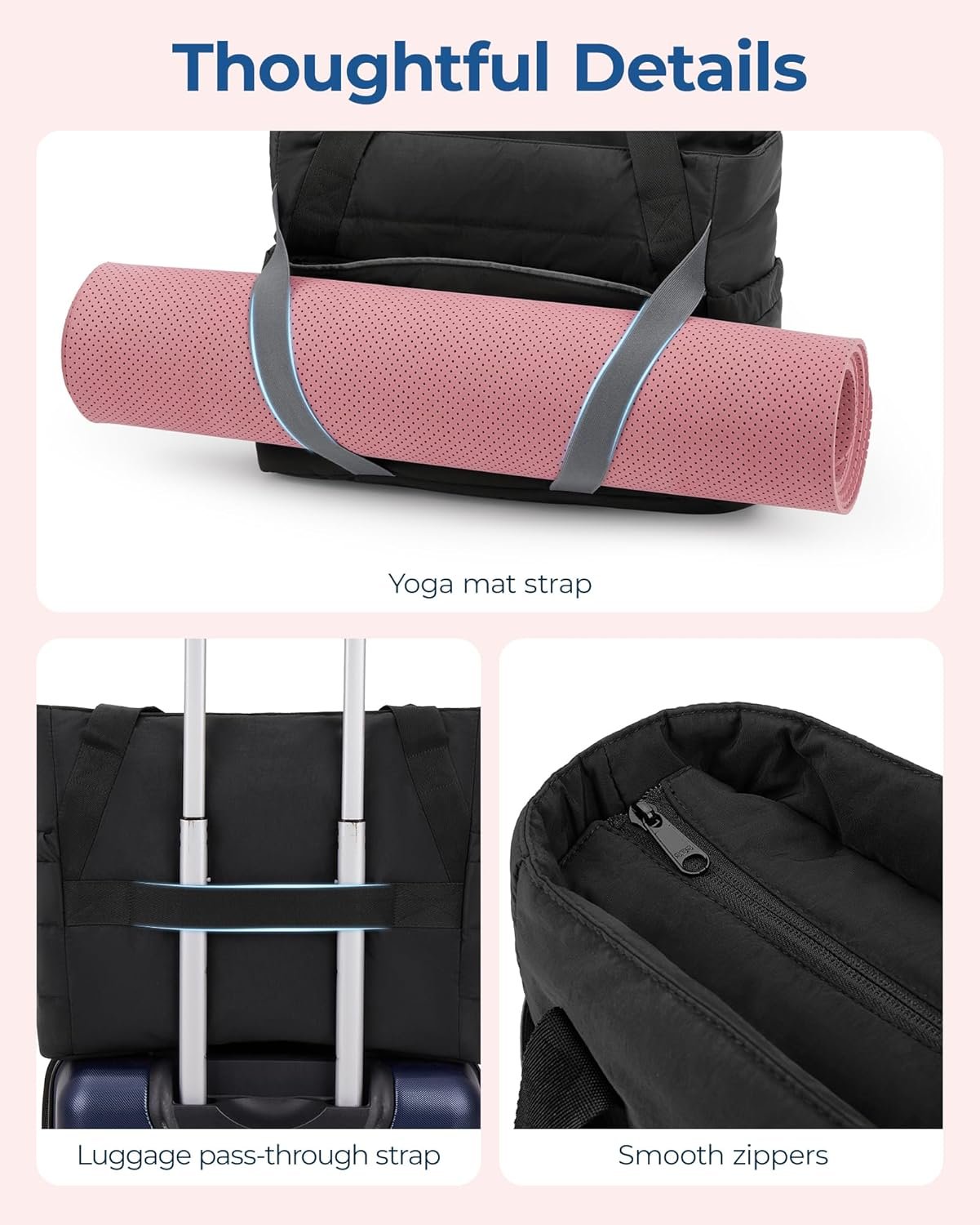 BAGSMART Tote Bag for Women with Zipper and Yoga Mat Straps Quilted Gym Tote for Travel, Work, Sport