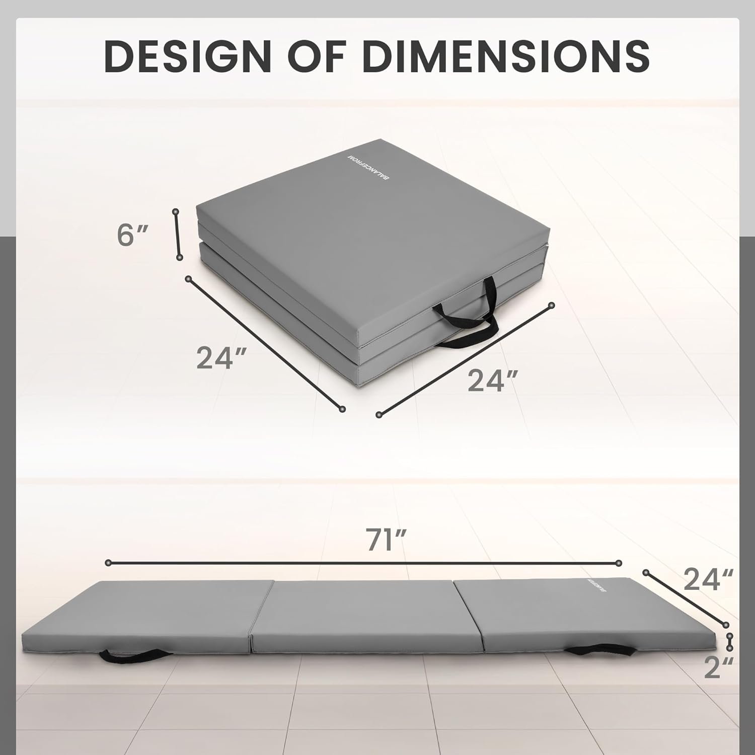 BalanceFrom 6×2 Feet 3-Panel Folding Gymnastics Mat – 2-Inch Thick Pad with Vinyl Surface and Carrying Handles for Tumbling, Yoga, Pilates, Home Workouts, and Martial Arts