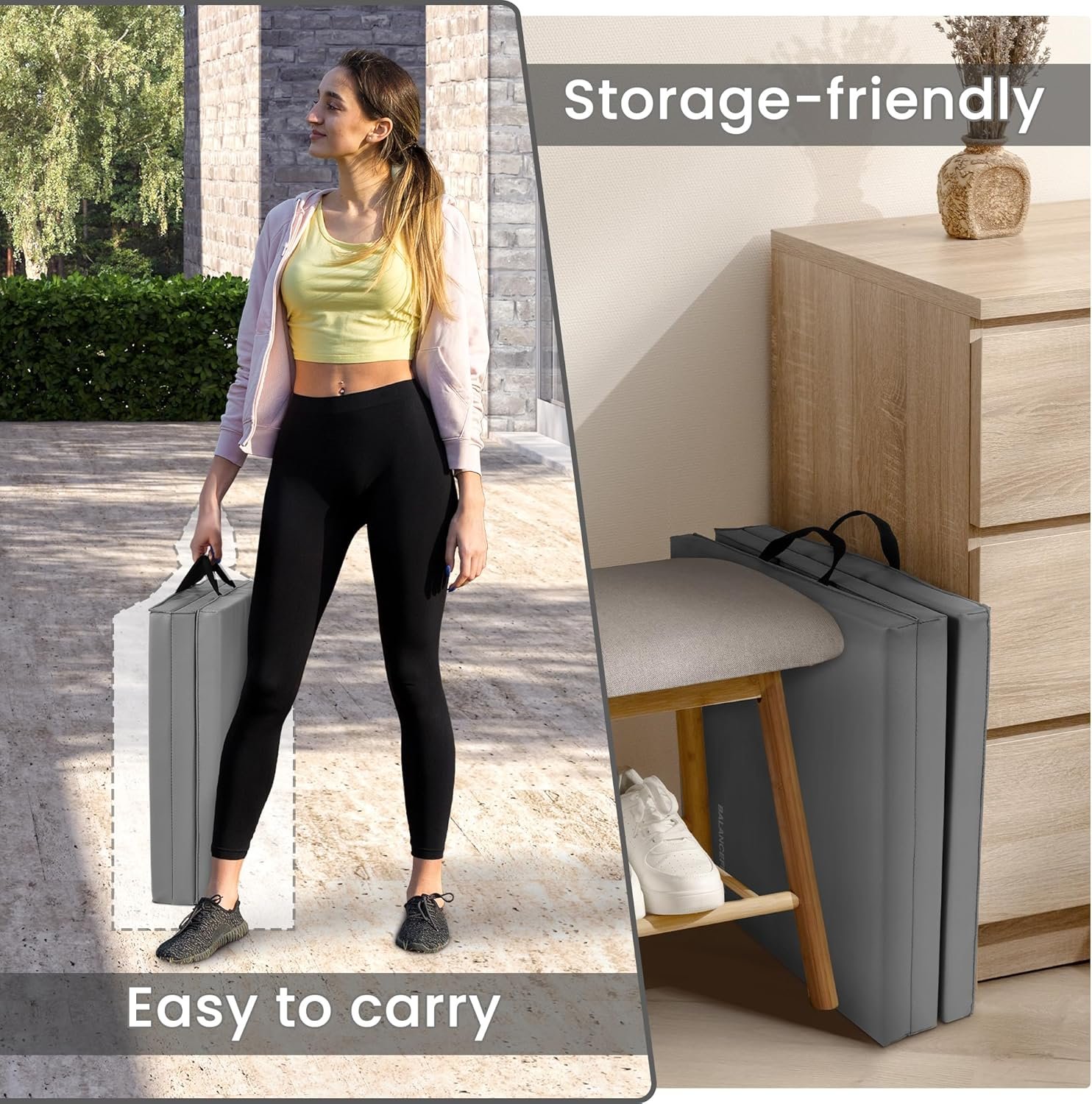 Versatile Exercise Mat: Gray 3-panel 6 ft. x 2 ft. x 2 in. folding mat for gymnastics, yoga, Pilates, aerobics, martial arts, and more; offering a safer, cushioned surface for a variety of workouts