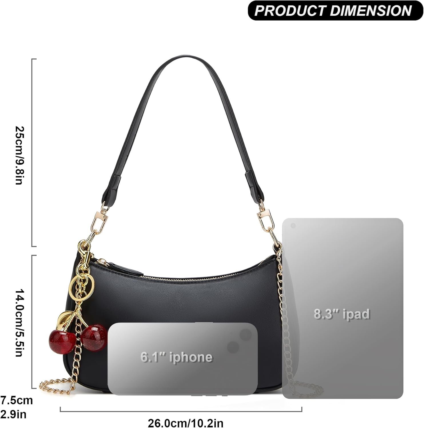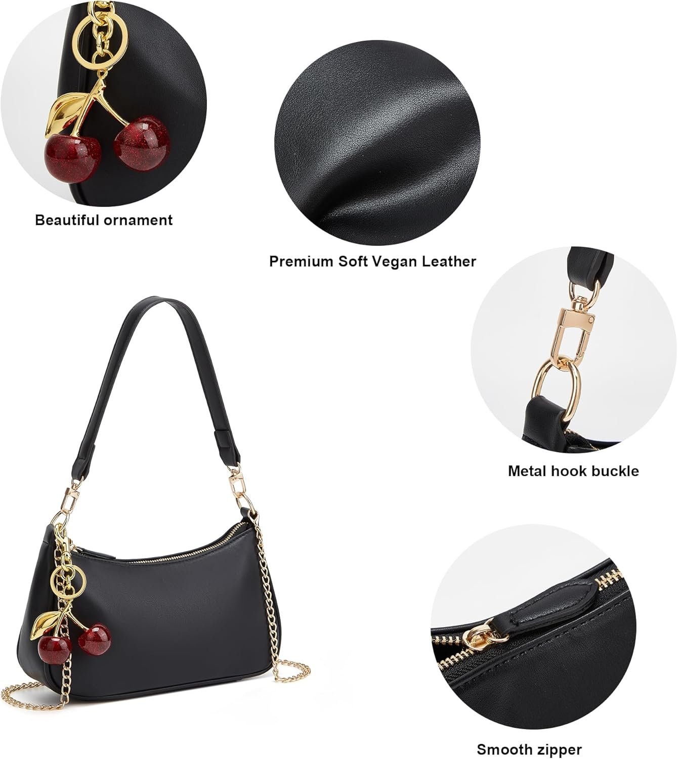 Black Shoulder Bag for Women Cute Hobo Cherry Purse Retro Clutch Underarm Handbag with Removable Straps
