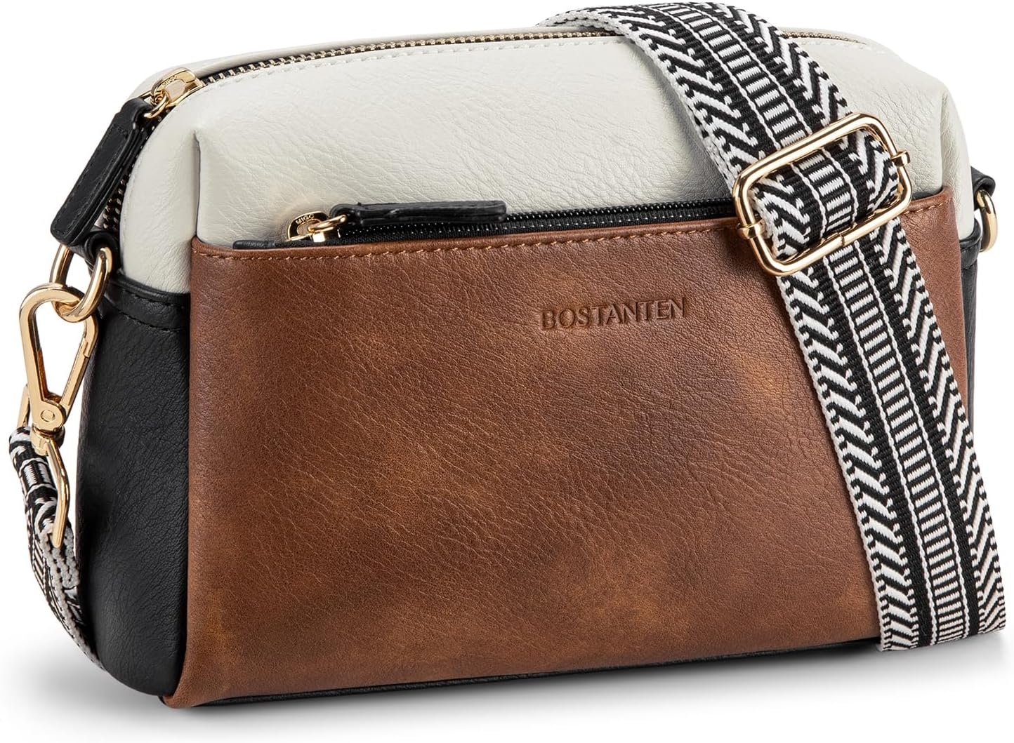 BOSTANTEN Small Crossbody Purse for Women Triple Zip Cell Phone Leather Handbag with Colored Shoulder Strap