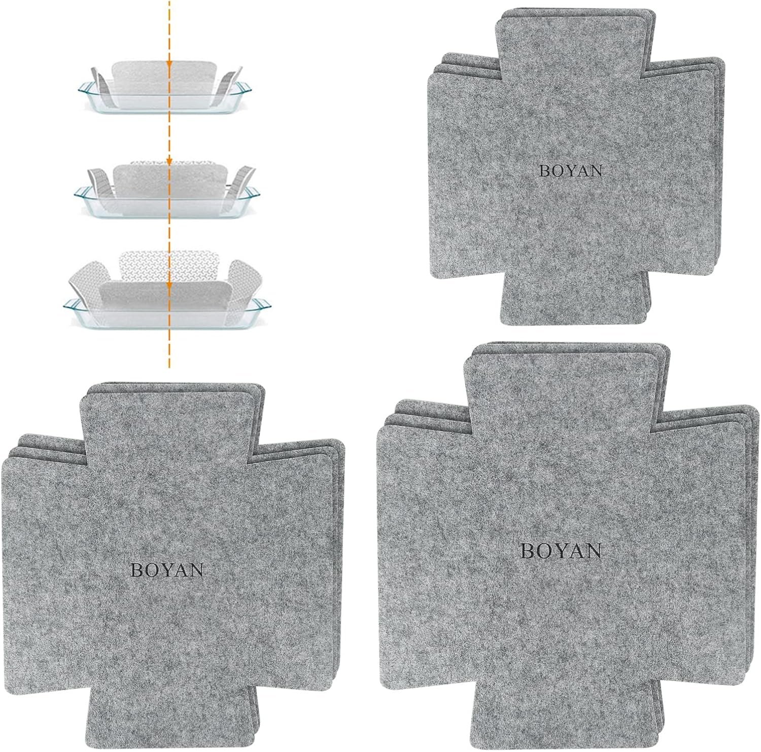 BYKITCHEN Bakeware Protectors, Set of 9, 3 Different Sizes, Premium Polyester, Non-Slip, Eco-Friendly, Grey, Square & Rectangular, Cookware Protectors