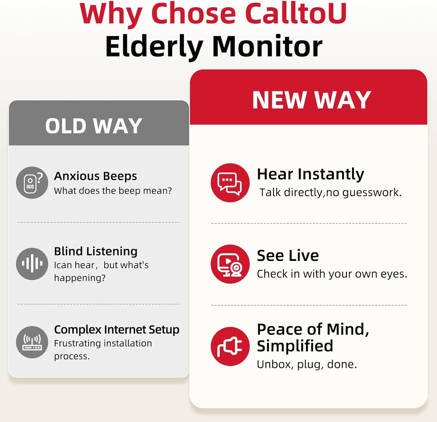 CallToU Elderly Monitor with Camera and Audio, 2-Way Talk Baby Monitors for Elderly No Wi-Fi Video Monitor for Elderly,Call Button for Elderly Home/Nursing Home Use | for Seniors, Dementia Patients