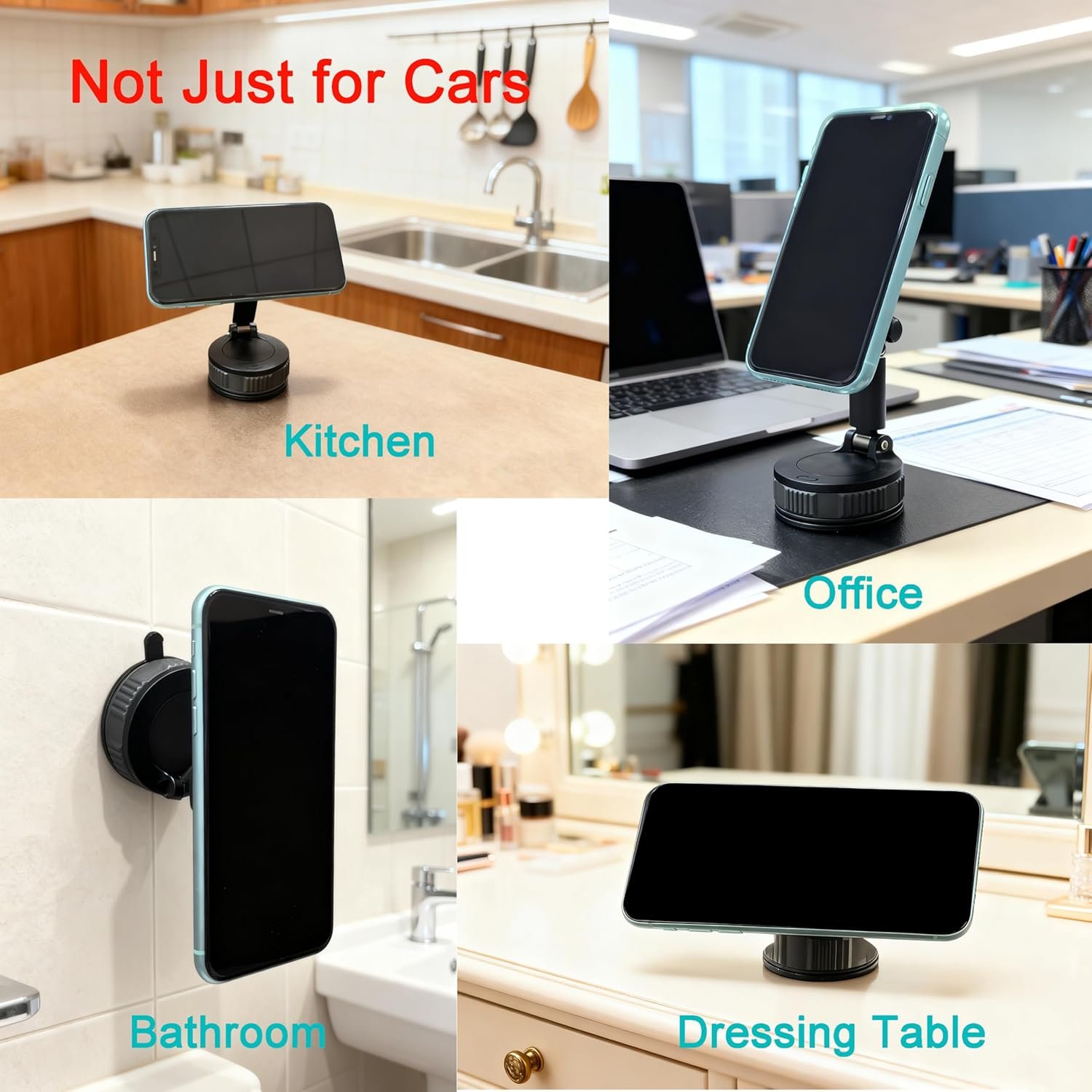 Multi-scene fit for nightstands/desks/countertops/bathroom walls, ideal for hands-free use(multi-scene phone mount, hands-free phone holder)
