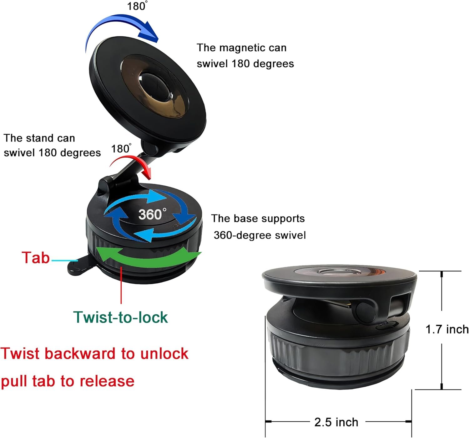 Wide Compatibility and 10s Setup:Compatible with iPhone 12–17 and other phones.Ideal for your car,home,studio. firmly press the gel base and rotate the vacuum lock clockwise to tight.