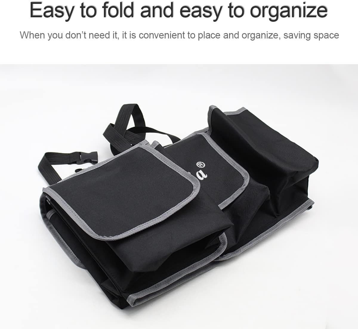 [A Must-have for Your Car] Our trunk organizer is made of premium 600D PVC fabric cloth, which is durable, stable and waterproof. There are 3 large pocket and a bottle holder with unique hanging design. Straps are strong, you don’t need to worry about organizer falling down due to the heavy item. Like road traveling? This is an essentials on the road trip. Put anything you need in the organizer and you can find them easier and quicker.A great addition to your car trunk.