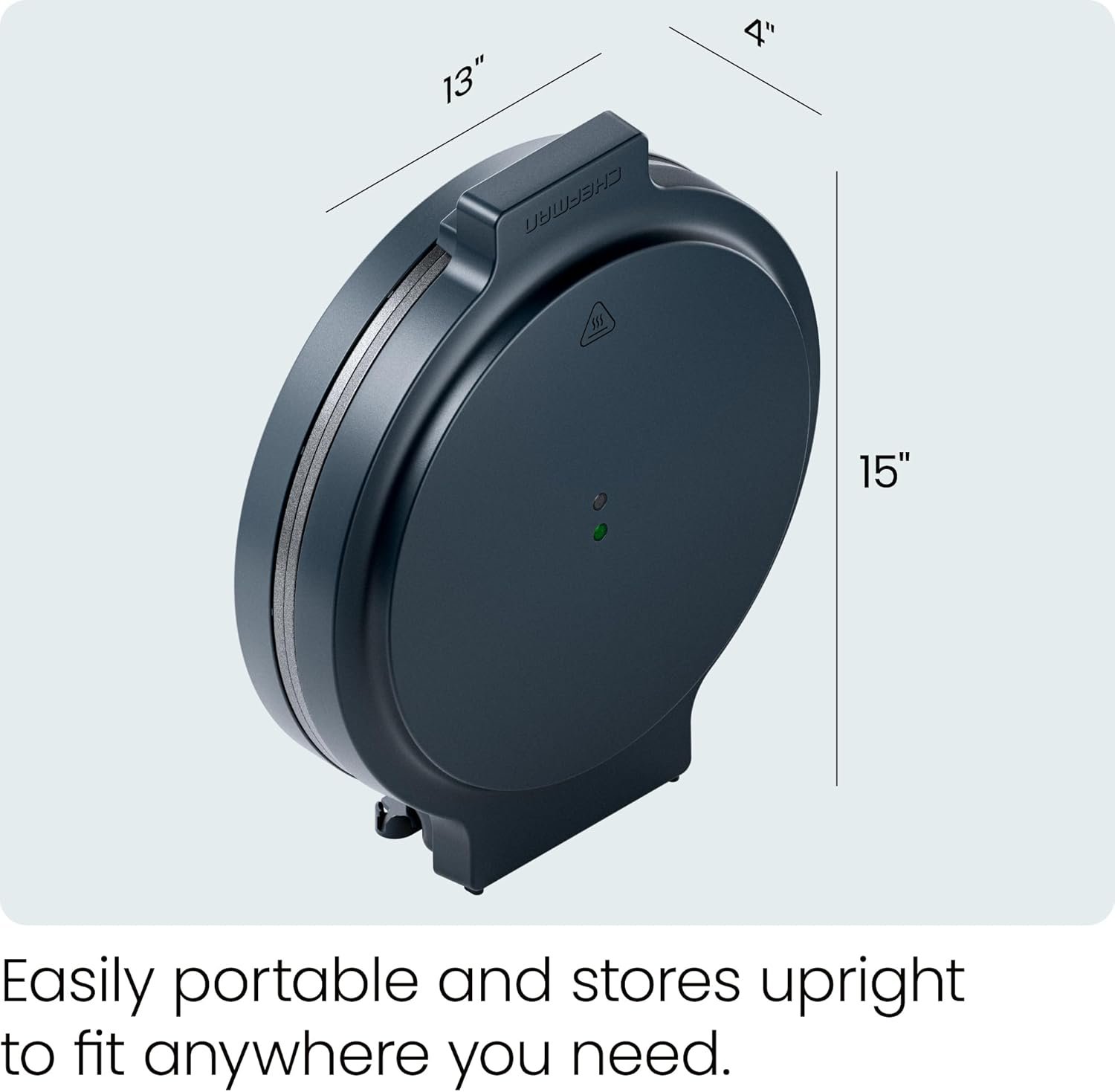 ART ON THE COUNTERTOP: This large electric griddle has a beautiful finish with integrated cord storage to avoid tangles. When closed, you can stand the product up to save space or transport this portable cooker.