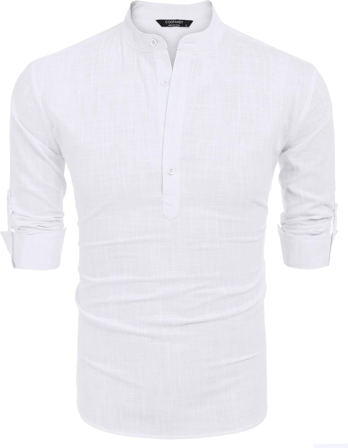 COOFANDY Men’s Cotton Linen Henley T-Shirt Long Sleeve Hippie Casual Beach T-Shirts