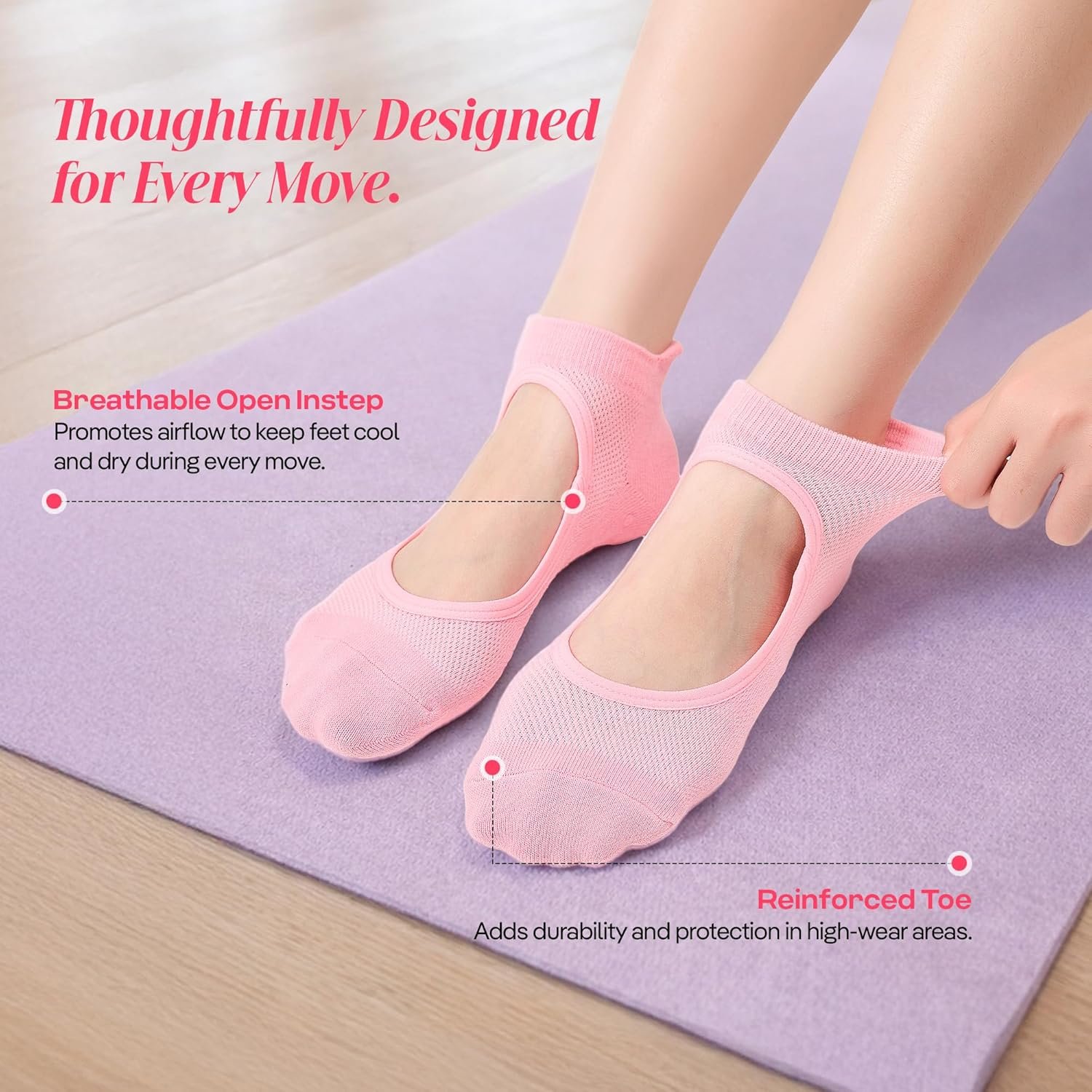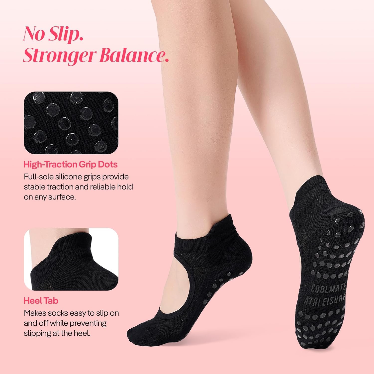 CoolMate Pilates Socks with Grips for Women, Yoga Socks, Crew Non Slip Women for Barre, Pilates Gifts for Women