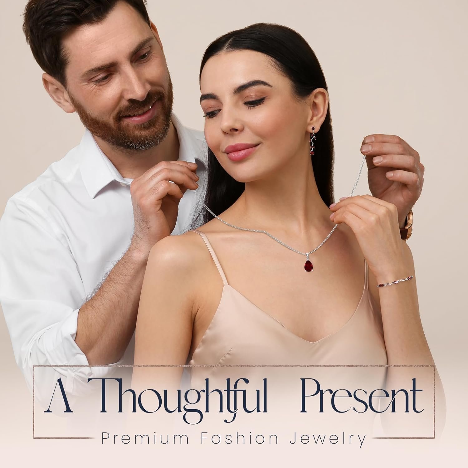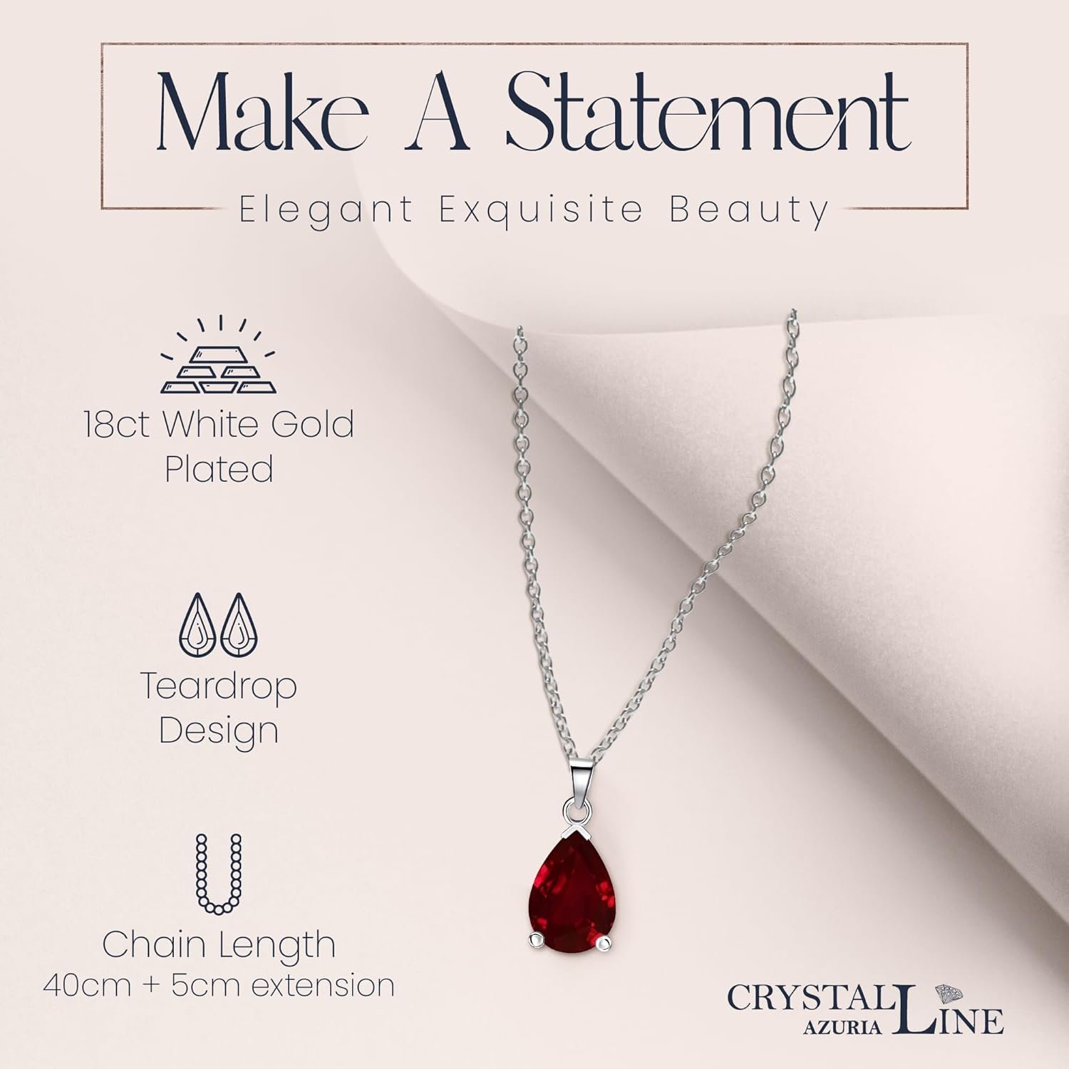 Crystalline Azuria Teardrops Set with Red Zirconia Crystals Necklace 18 inches Dangle Earrings Bracelet 18K White Gold Plated