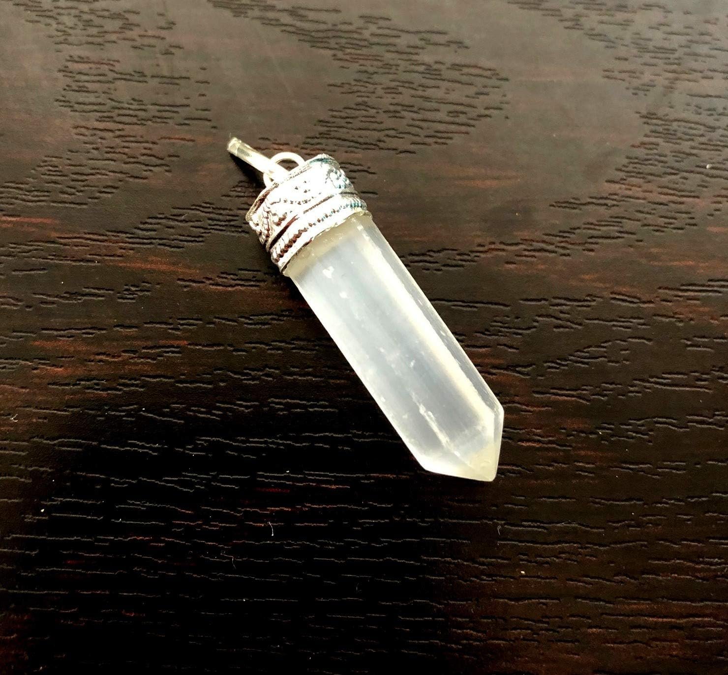 crystalmiracle Exclusive Selenite Pointer Pendant 6 Faceted Reiki Energy Wellness Crystal Healing Metaphysical Powerful Men Women Gift Gemstone Accessory Strength
