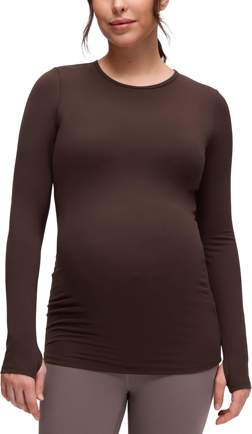 CRZ YOGA Butterluxe Maternity Crewneck Long Sleeve Shirts – Athletic Yoga Casual Pregnancy Womens Tee Tops Basic Layer Soft