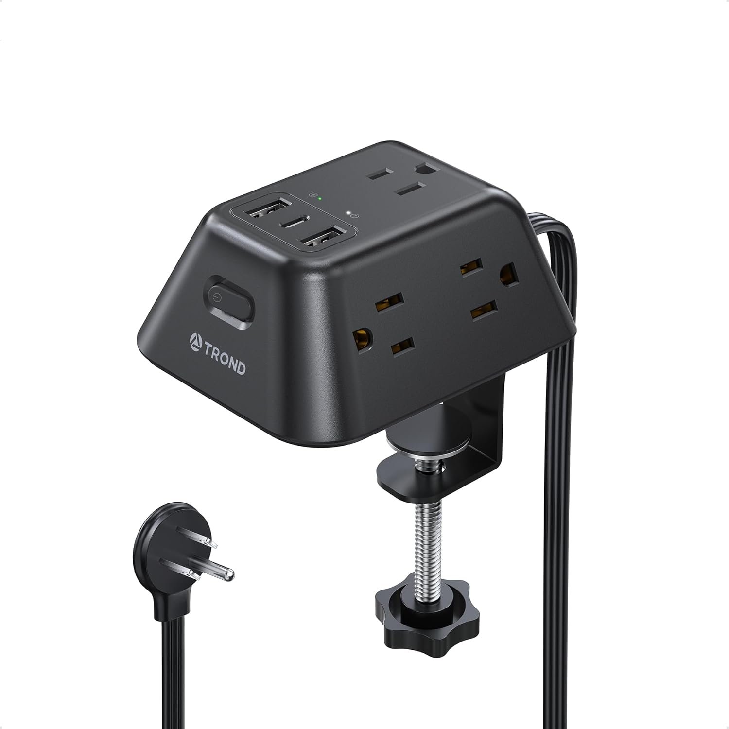 Desk Power Strip with USB: Equipped with 1 USB- C(5V/3.0A) & 2 USB- A Port(5V/2.4A). empowering you to charge up to 8 devices simultaneously without needing multiple adapters. Keep your desk tidy and organized while efficiently powering your cellphones, earphones, tablets, and cameras