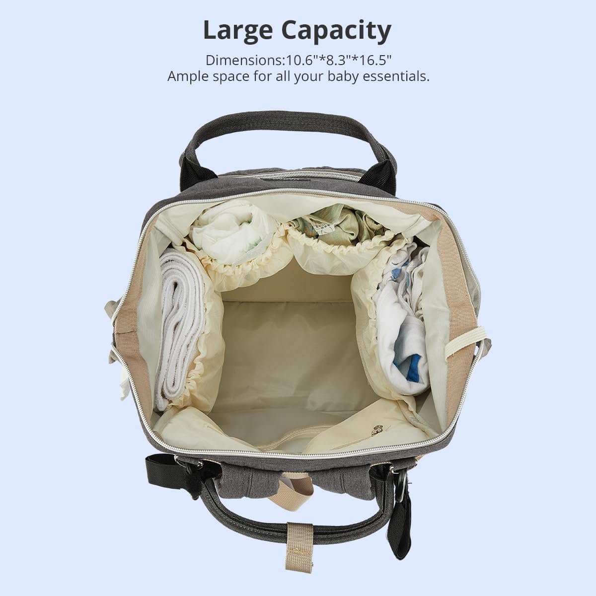 Diaper Bag Multi-Function Waterproof Travel Backpack Nappy Bag for Baby Care with Insulated Pockets, Large Capacity, Durable (Grey)