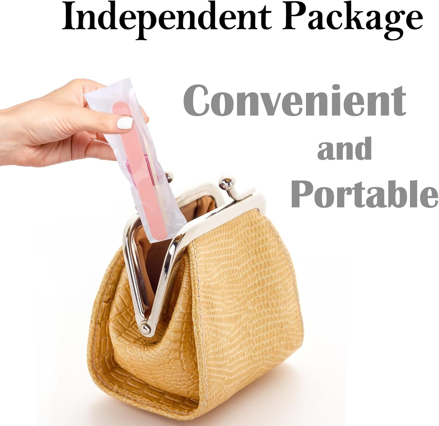 Press on Nail Packing Kit: manicure supplies contains 50 sets of disposable manicure kits, including 50pcs mini nail buffers, 50pcs nail files, 50pcs nail cuticle sticks and 50pcs opp bags, enough quantity can meet your daily manicure needs.