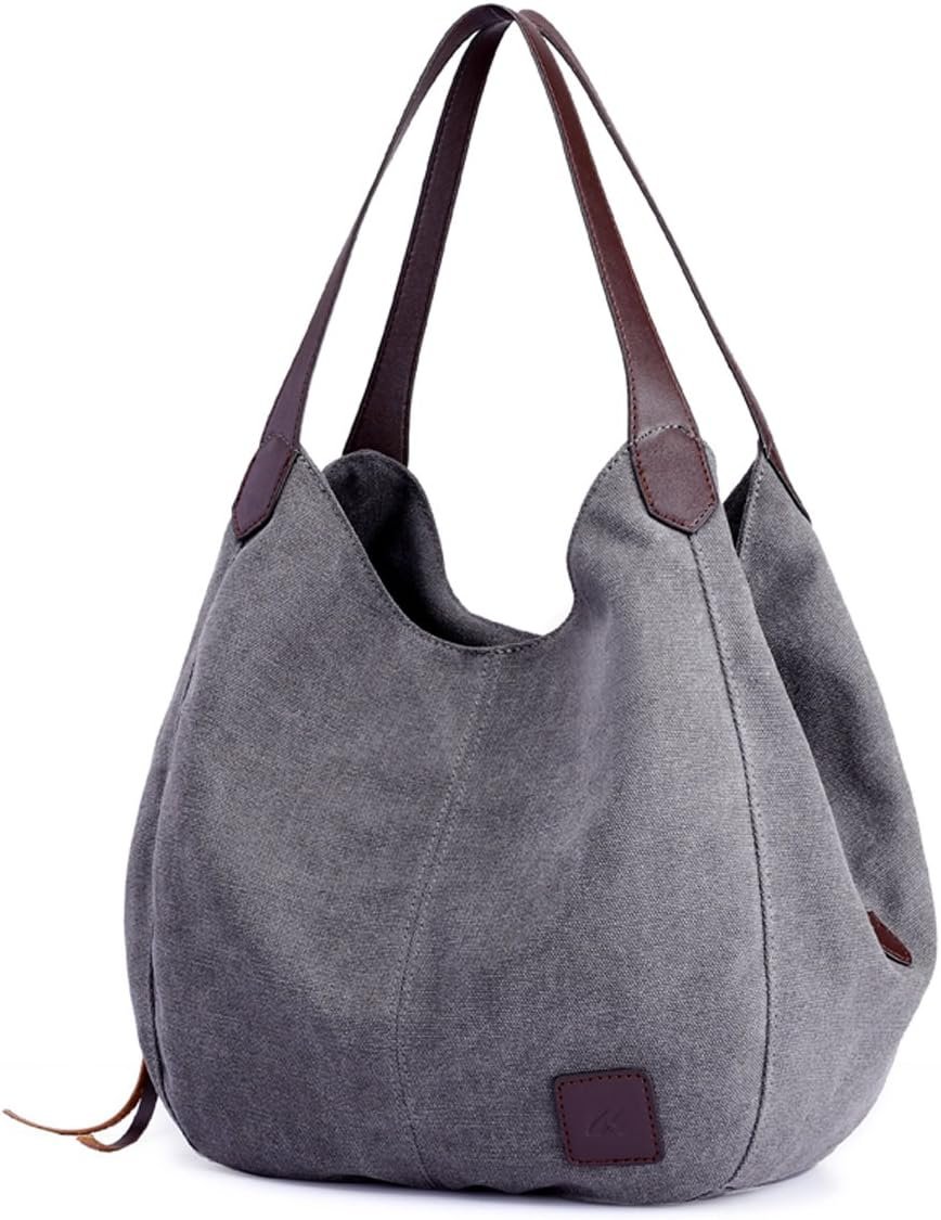 DOURR Women’s Multi-pocket Shoulder Bag Fashion Cotton Canvas Handbag Tote Purse