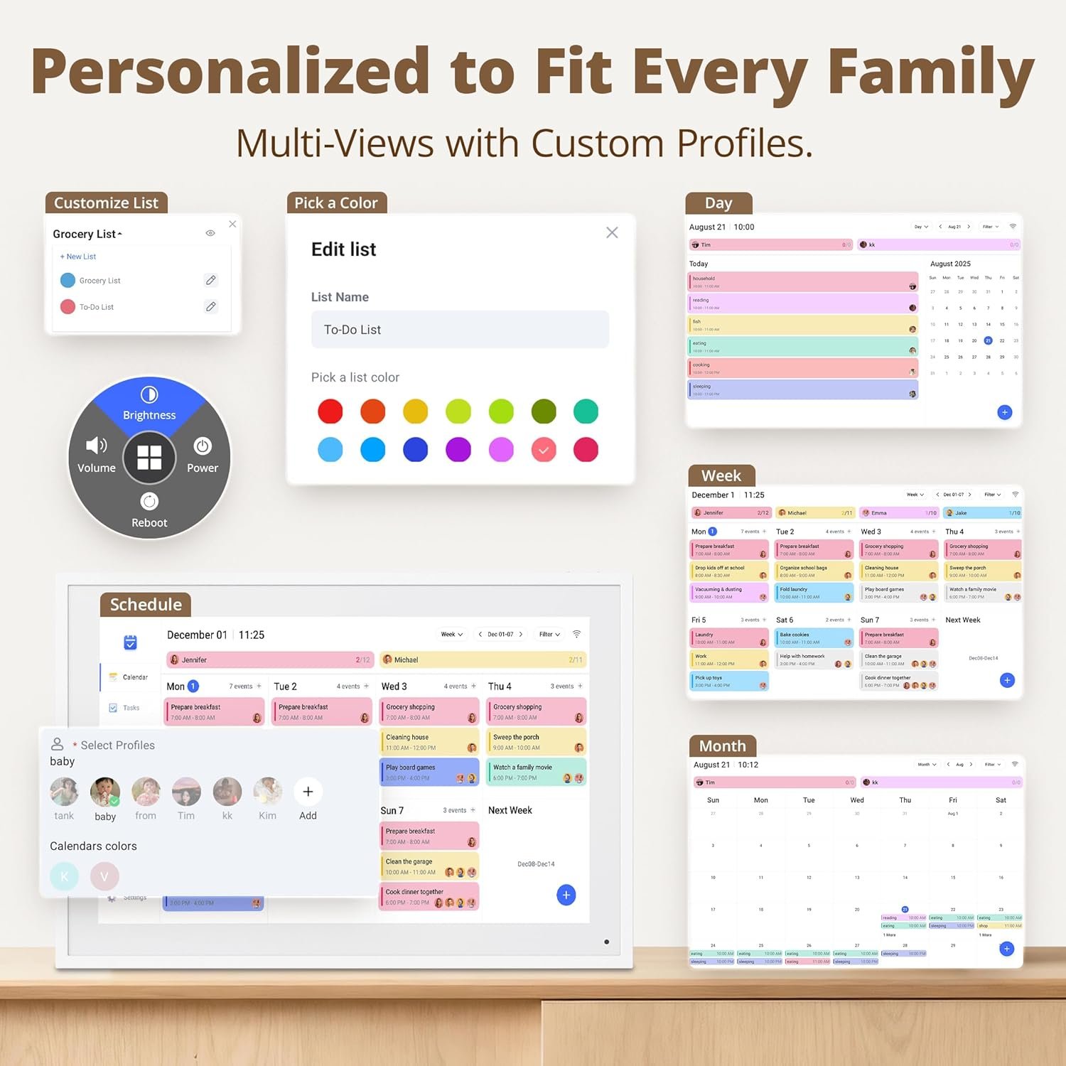 【Easy Setup and Auto-Sync】: Enjoy a user-friendly design that our smart picture frame allows for quick setup—just plug in, connect to Wi-Fi, and link your calendar to the Mobile App. Once synced, it seamlessly integrates multiple personal calendars (iOS, Google, etc.) into one unified interface. Authorize additional devices for even greater convenience.