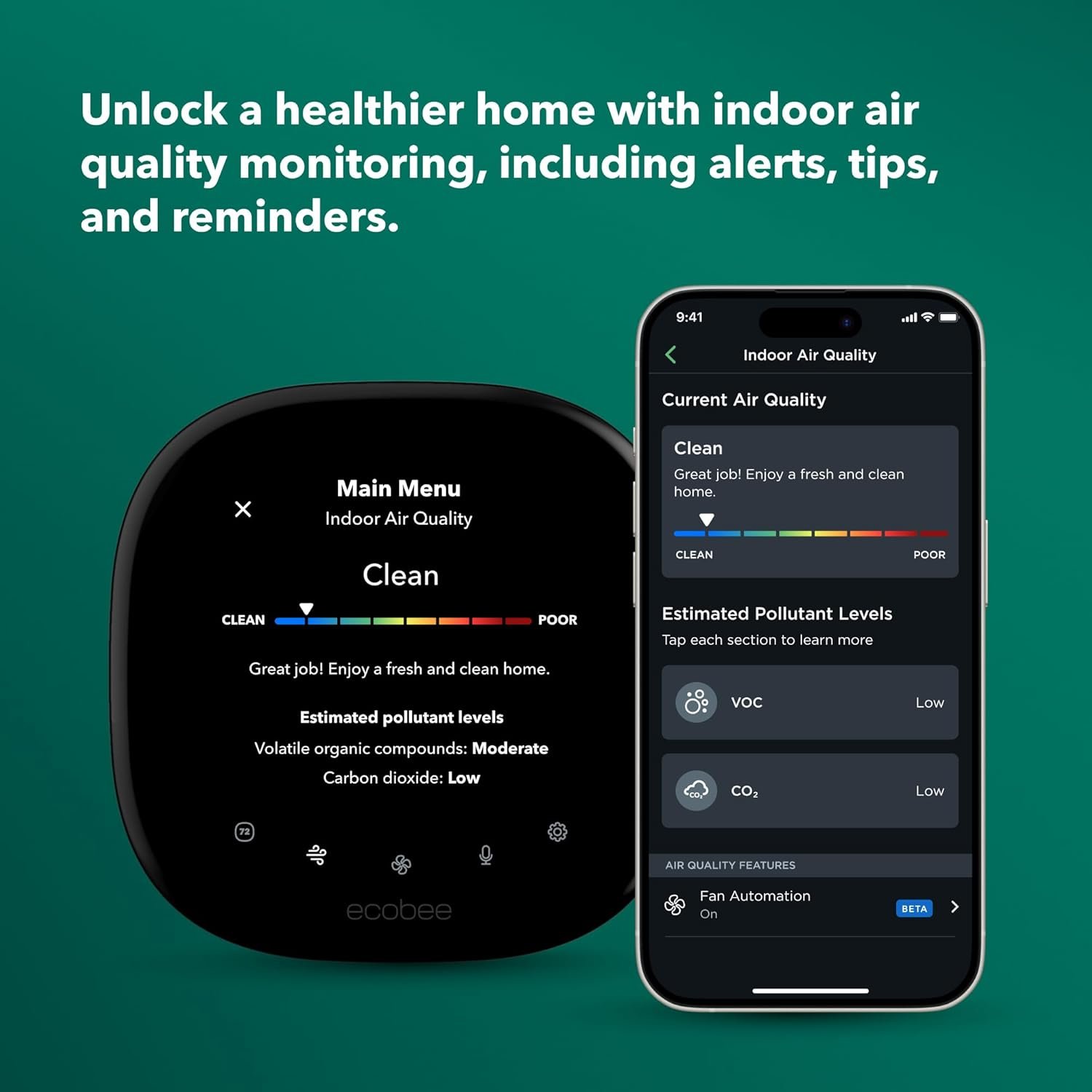 The built-in air quality monitor alerts you to poor air quality, provides tips on how to improve it, and reminds you when it’s time to change your furnace’s air filter