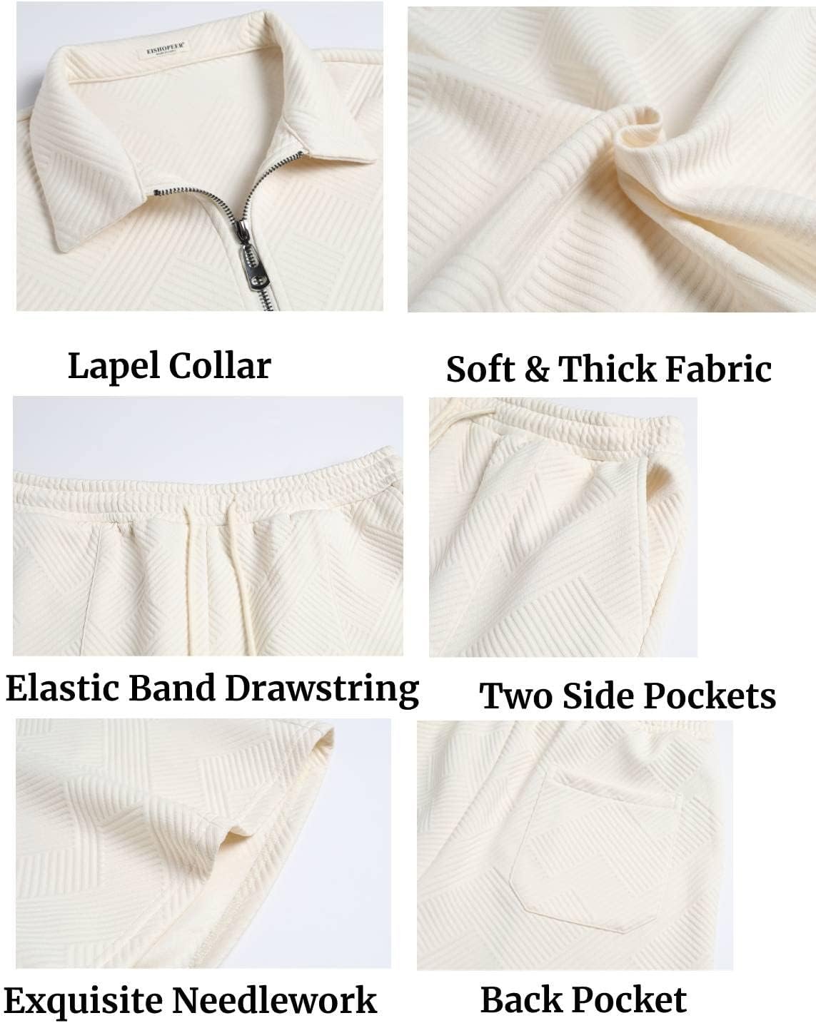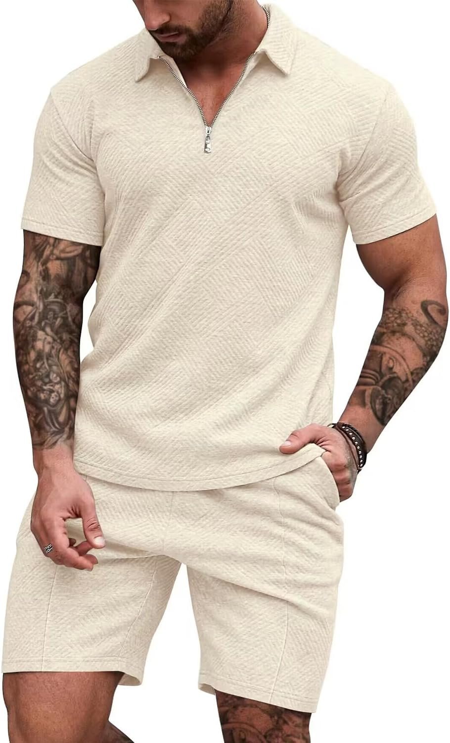 Casual Zipper Polo Suit for Men 2 Piece Shorts Tracksuit