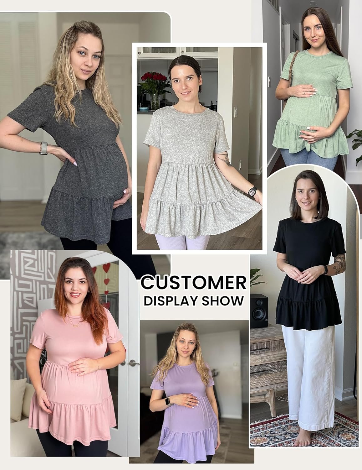Ekouaer 3 Pack Women’s Maternity Shirts Short Sleeve Ruffle Pregnancy Clothes Blouse Peplum Babydoll Tops Casual Mama Tee
