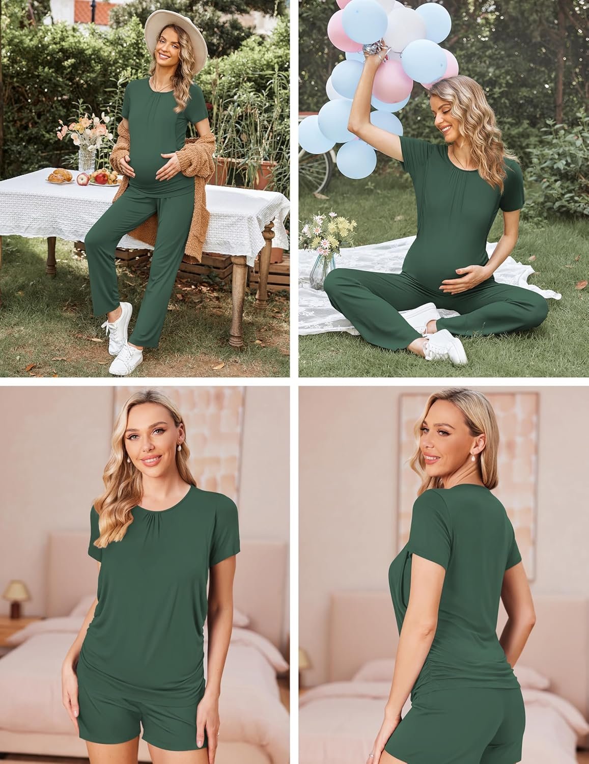 【3 Piece Set】This maternity nursing pajama set includes 1 piece short sleeve nursing tops, 1 piece maternity shorts, and 1 piece maternity pants. Suitable for all stages of pregnancy and postpartum, the combination of shorts and pants makes this postpartum pajamas suitable for all seasons.