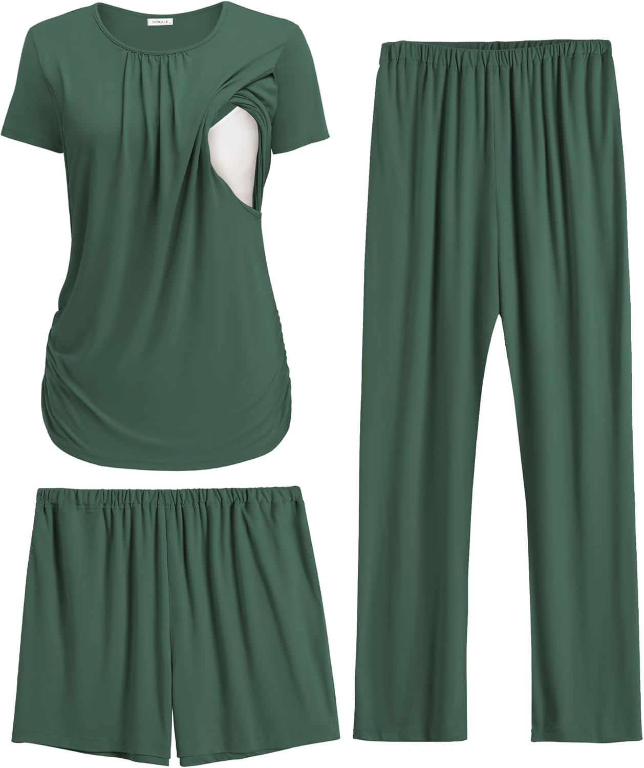 Ekouaer Maternity Nursing Pajamas Set 3 Piece Postpartum Lounge Breastfeeding Pjs Pregnancy Shorts & Pants S-XXL