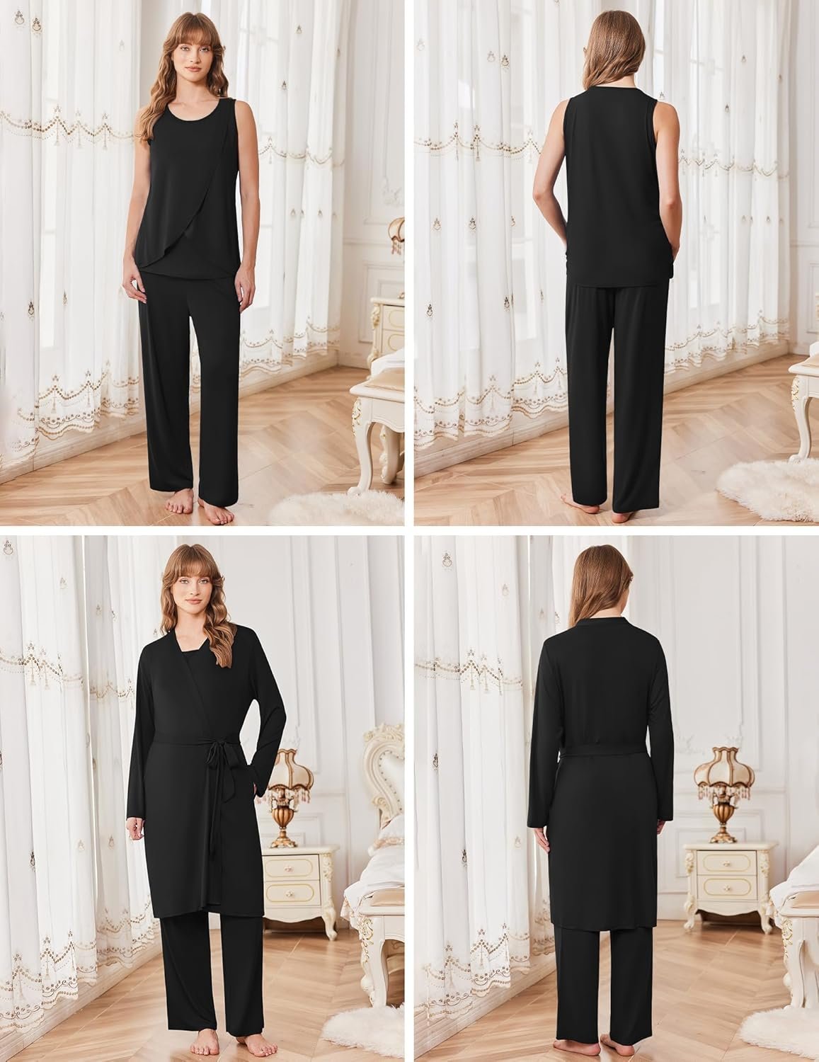 Ekouaer Maternity Nursing Robe Set 3 Pieces Sleeveless Top, Pregnancy Pants & Robe Double Layer Pajamas S-XXL