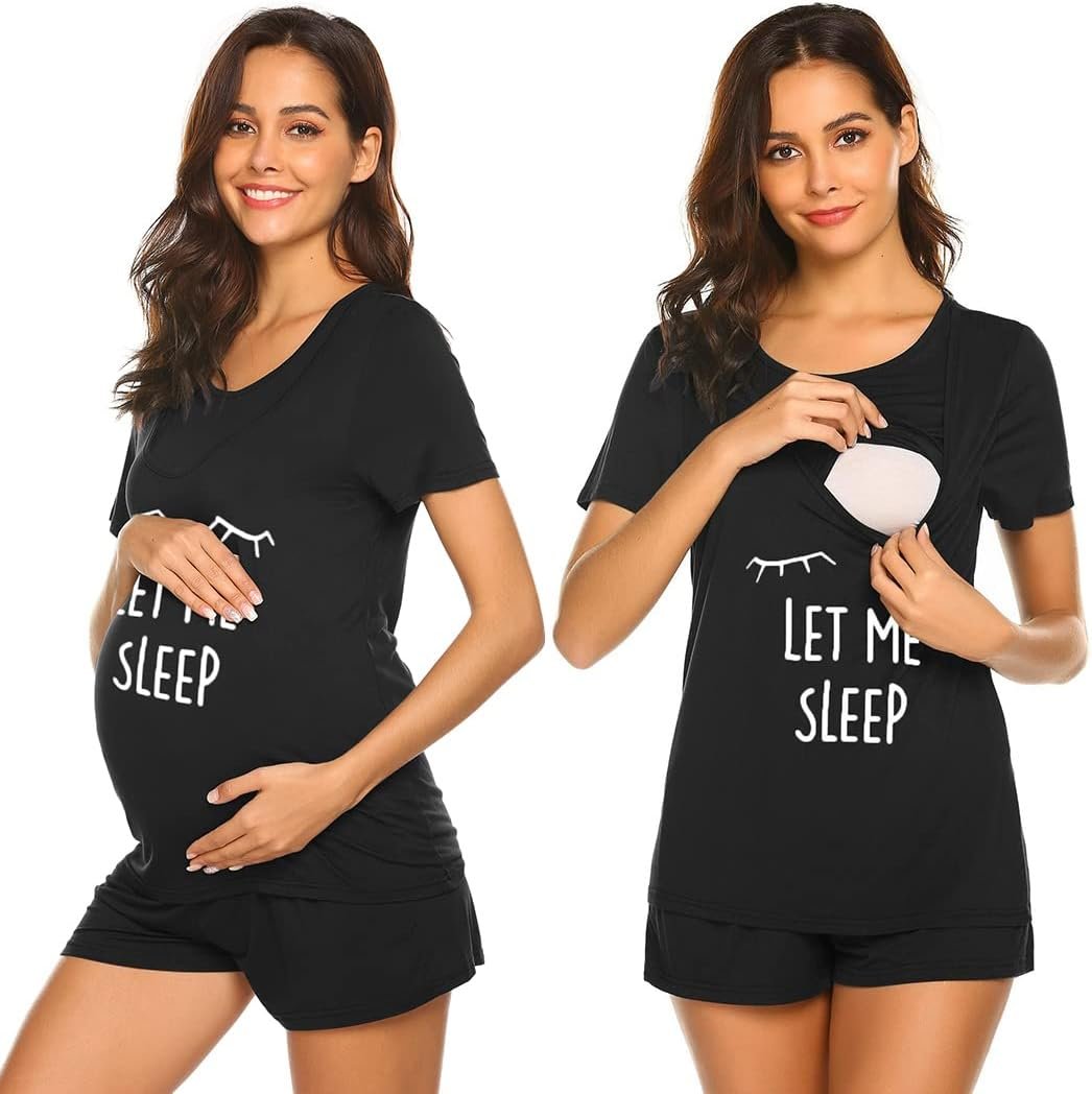 Ekouaer Maternity Pajamas Nursing Pjs for Breastfeeding Shirt and Adjustable Maternity Short Postpartum Sleepwear