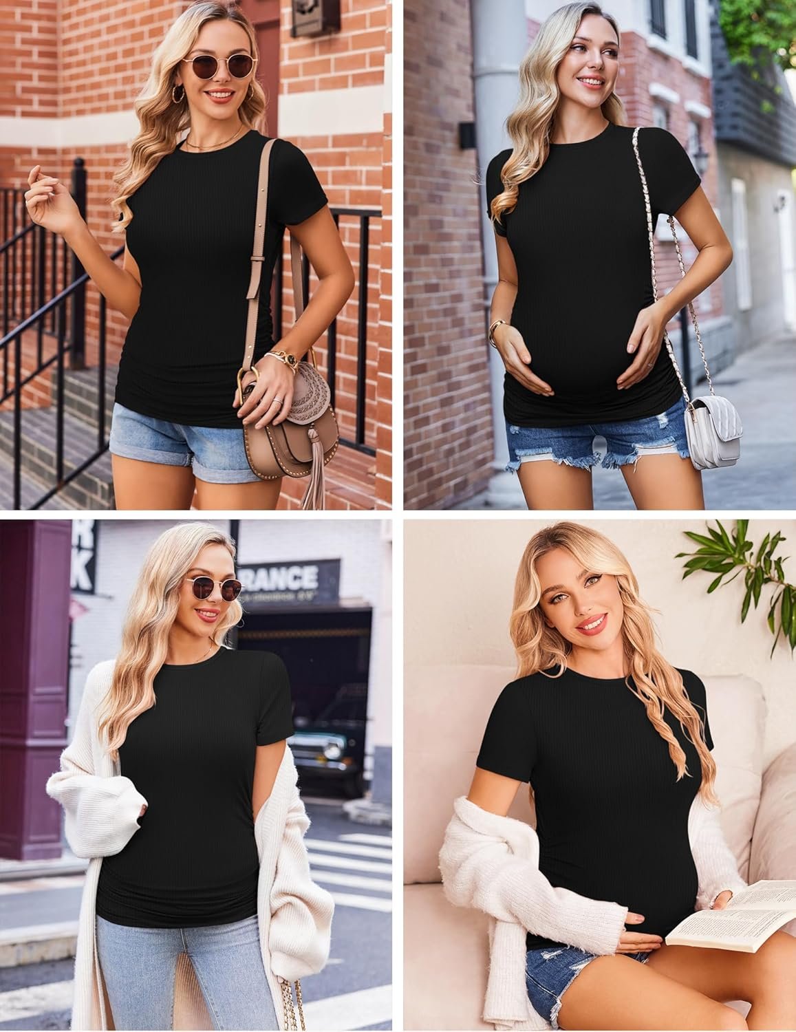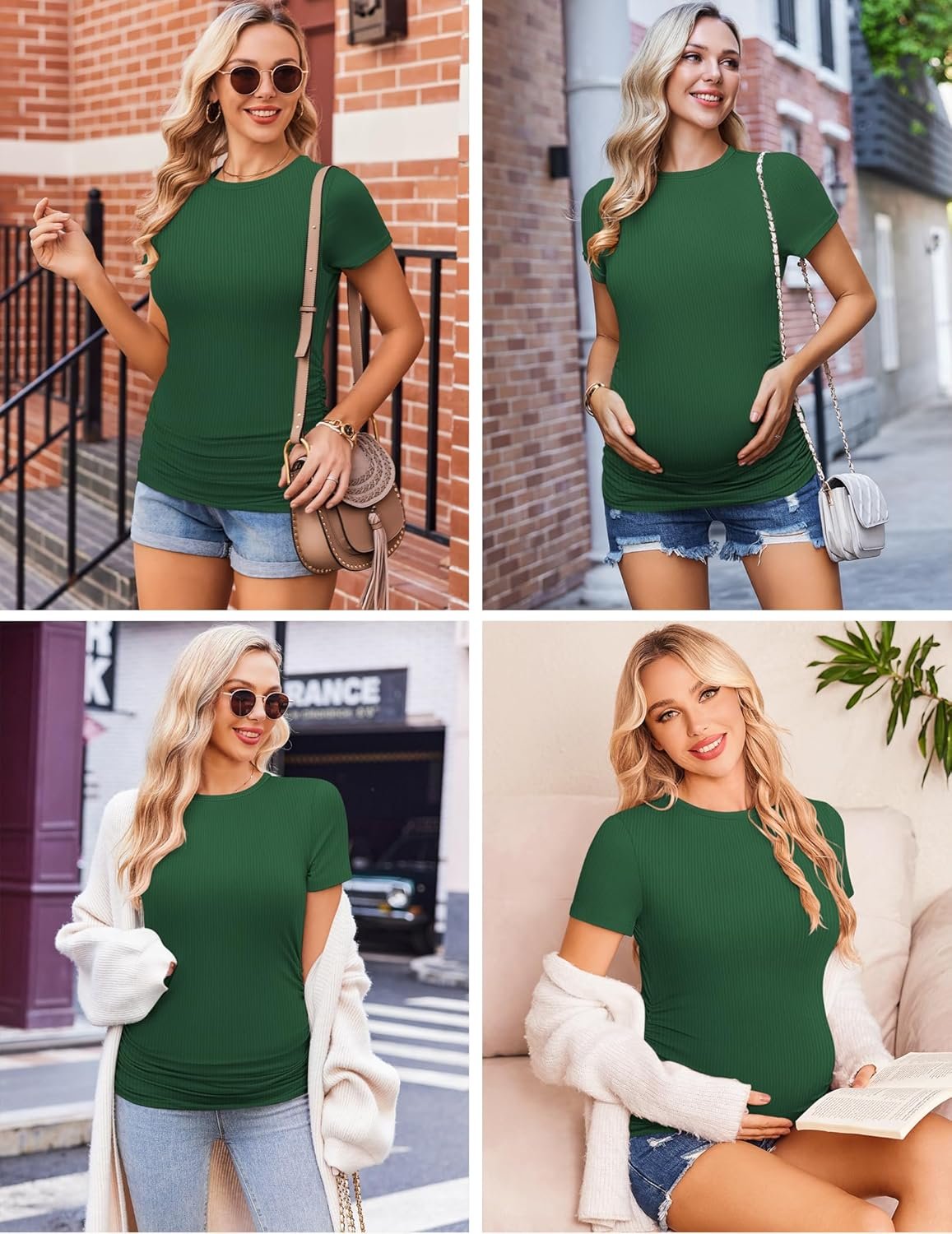 Design: This maternity tops feature short sleeve, crew neck, ribbed, and side ruched, very cute, the side ruched accommodate a growing belly.