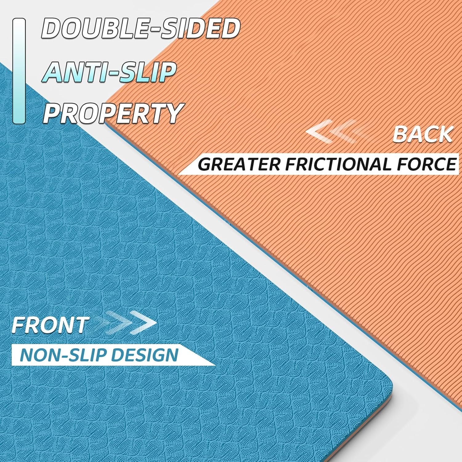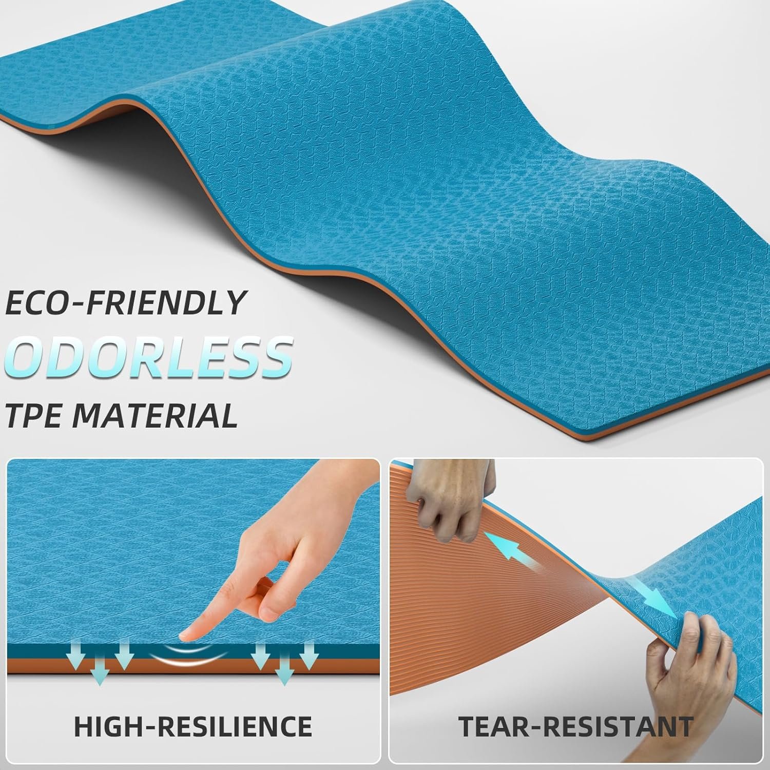 Extra Long & Wide Thick Yoga Mat for Tall Men & Women,76”x32.6”x7mm – High Density TPE Non-Slip Both Sides, Lightweight 1.1kg with Superior Cushioning for gymnastics, Pilates, Home, Workout (Blue-orange)