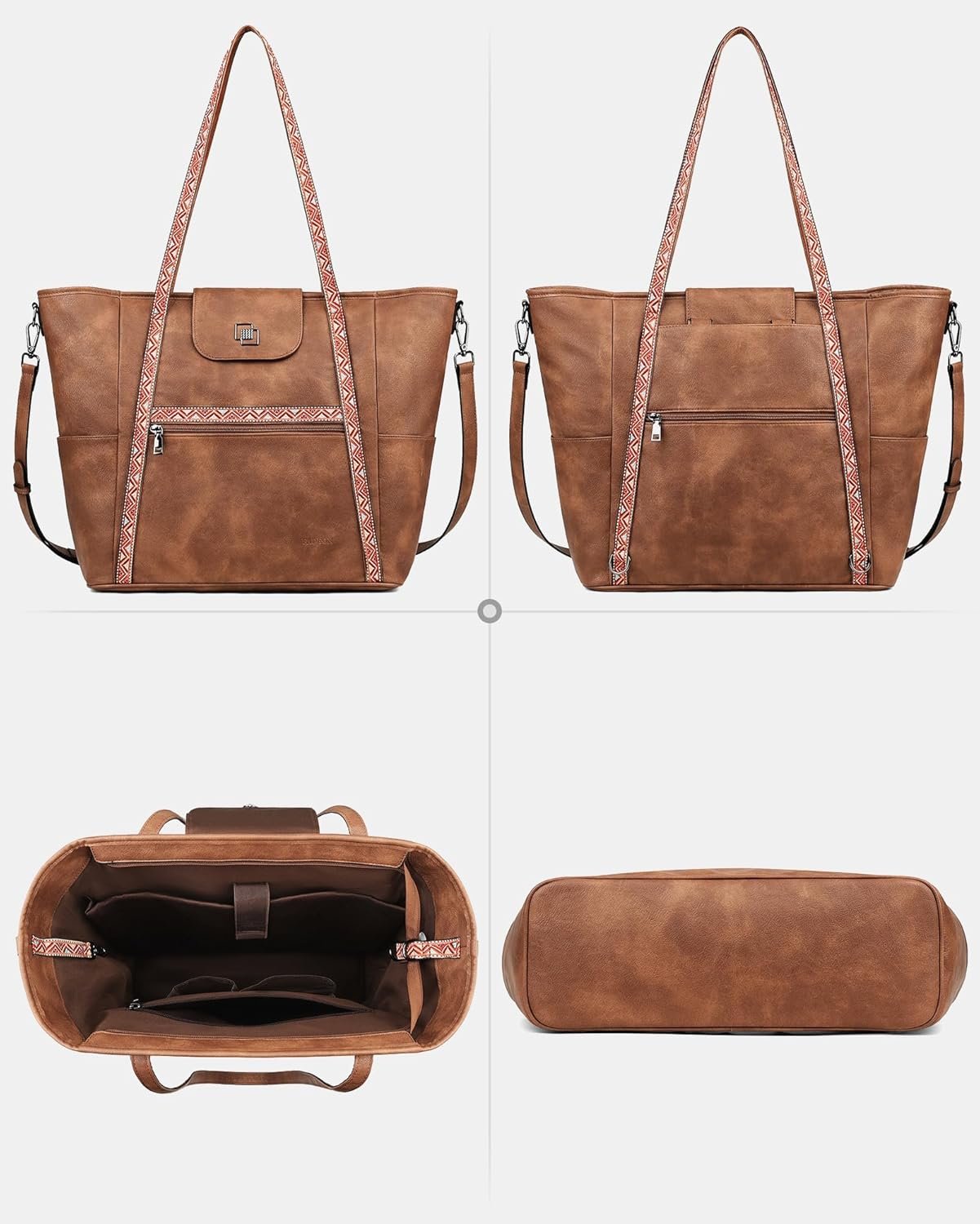 FADEON Large Laptop Tote Bag for Women Designer Leather Laptop Bag Fashion Travel Backpack Purse Shoulder Handbag