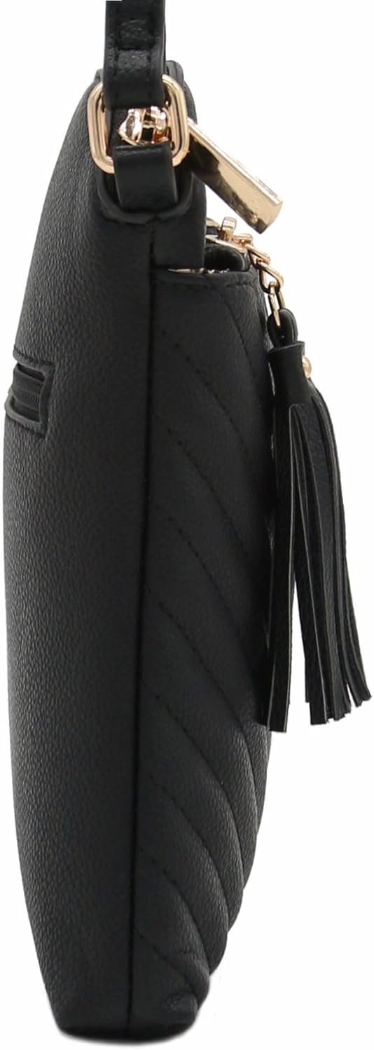 FashionPuzzle Chevron Quilted Medium Crossbody Bag with Tassel Accent